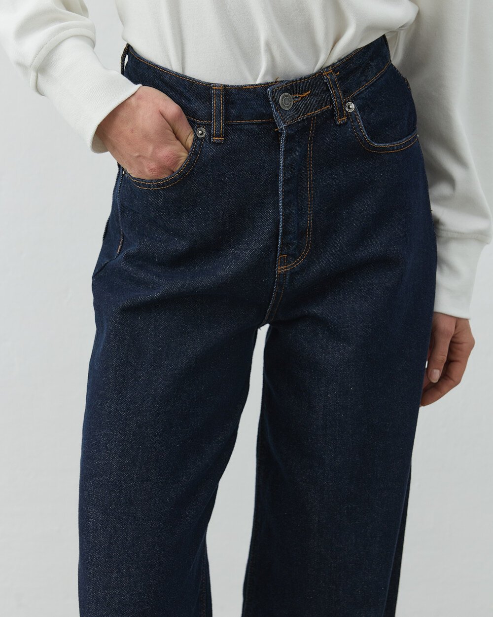 Detay: Baggy fit kesimiyle gün boyu konfor sunan bu jean, modern ve rahat stilin anahtar parçasıdır. Yüksek bel formu vücut hatlarını dengeli gösterirken, bol paça yapısı hareket özgürlüğü sağlar. Koyu lacivert rengiyle klasik jeanlerden ayrışır ve kombinlere güçlü bir karakter katar. Ön ve arka cep detaylarıyla fonksiyonel, fermuarlı ve düğmeli yapısıyla kullanımı pratiktir.
