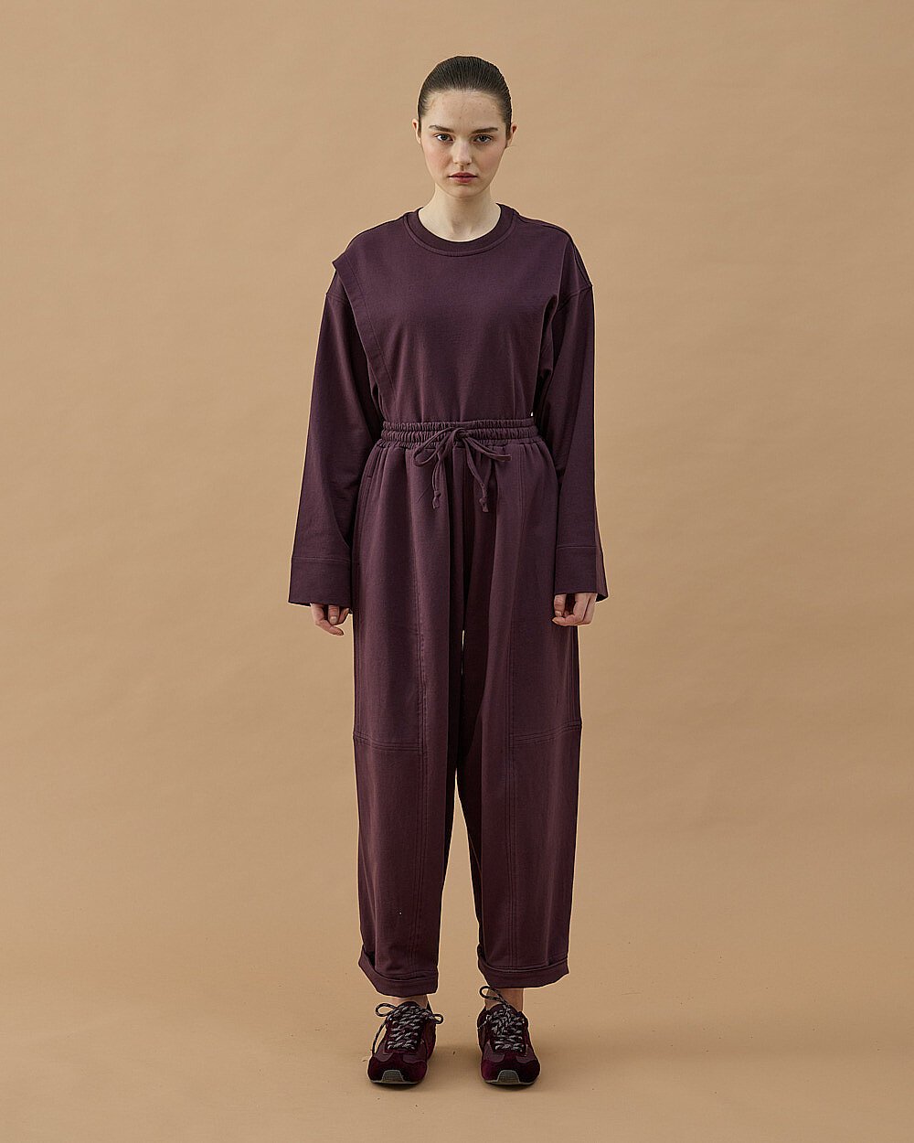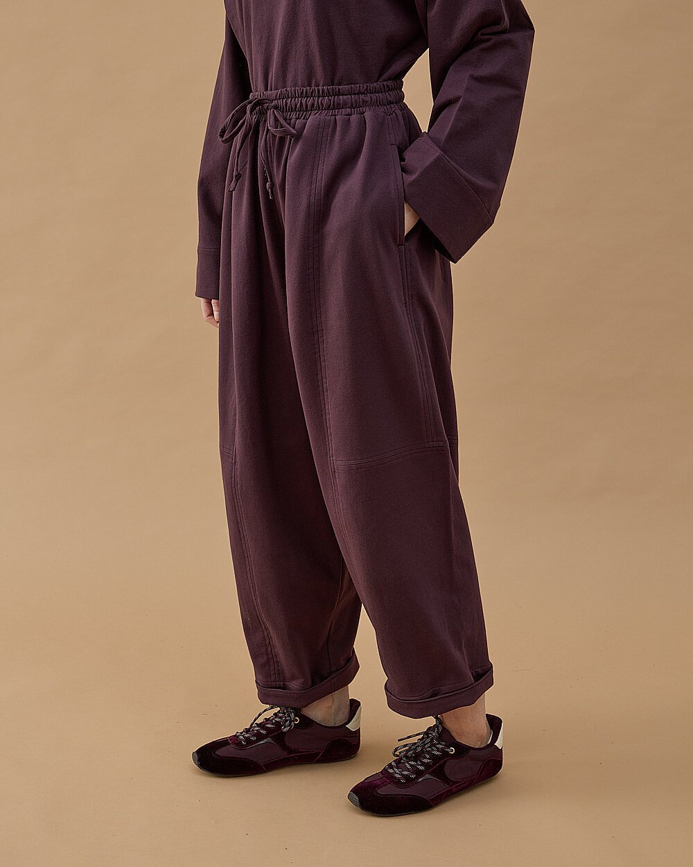 Cotton İki İplik Bol Balon Fit Kesikli Eşofman Altı Mürdüm