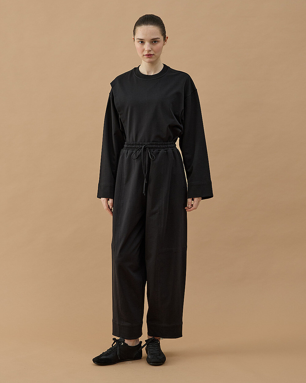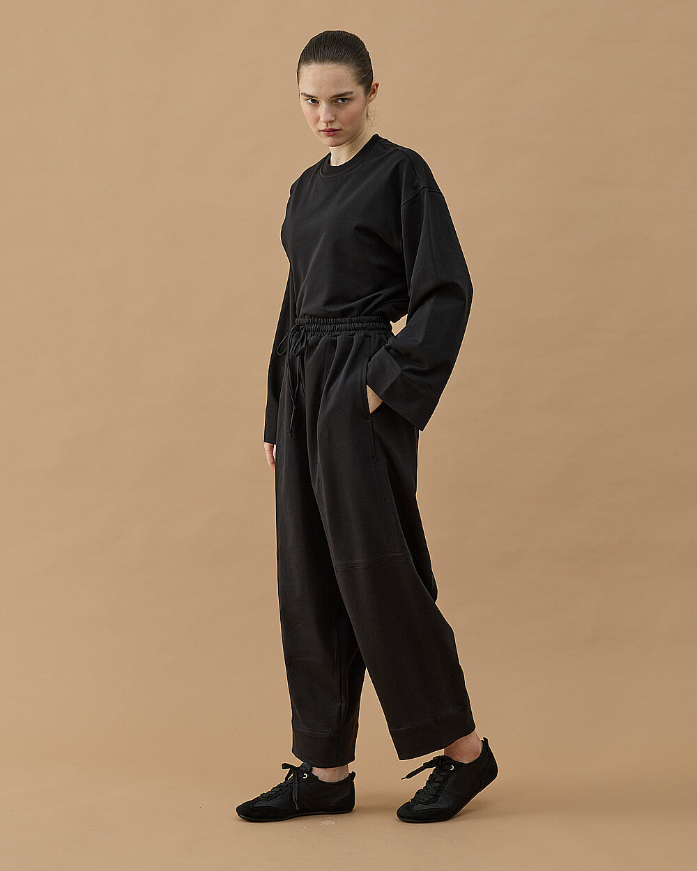 Cotton İki İplik Bol Balon Fit Kesikli Eşofman Altı Siyah