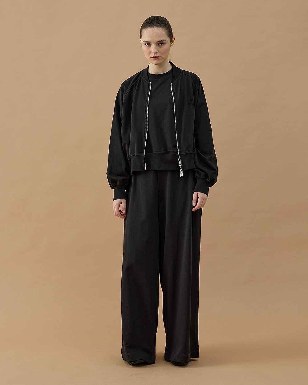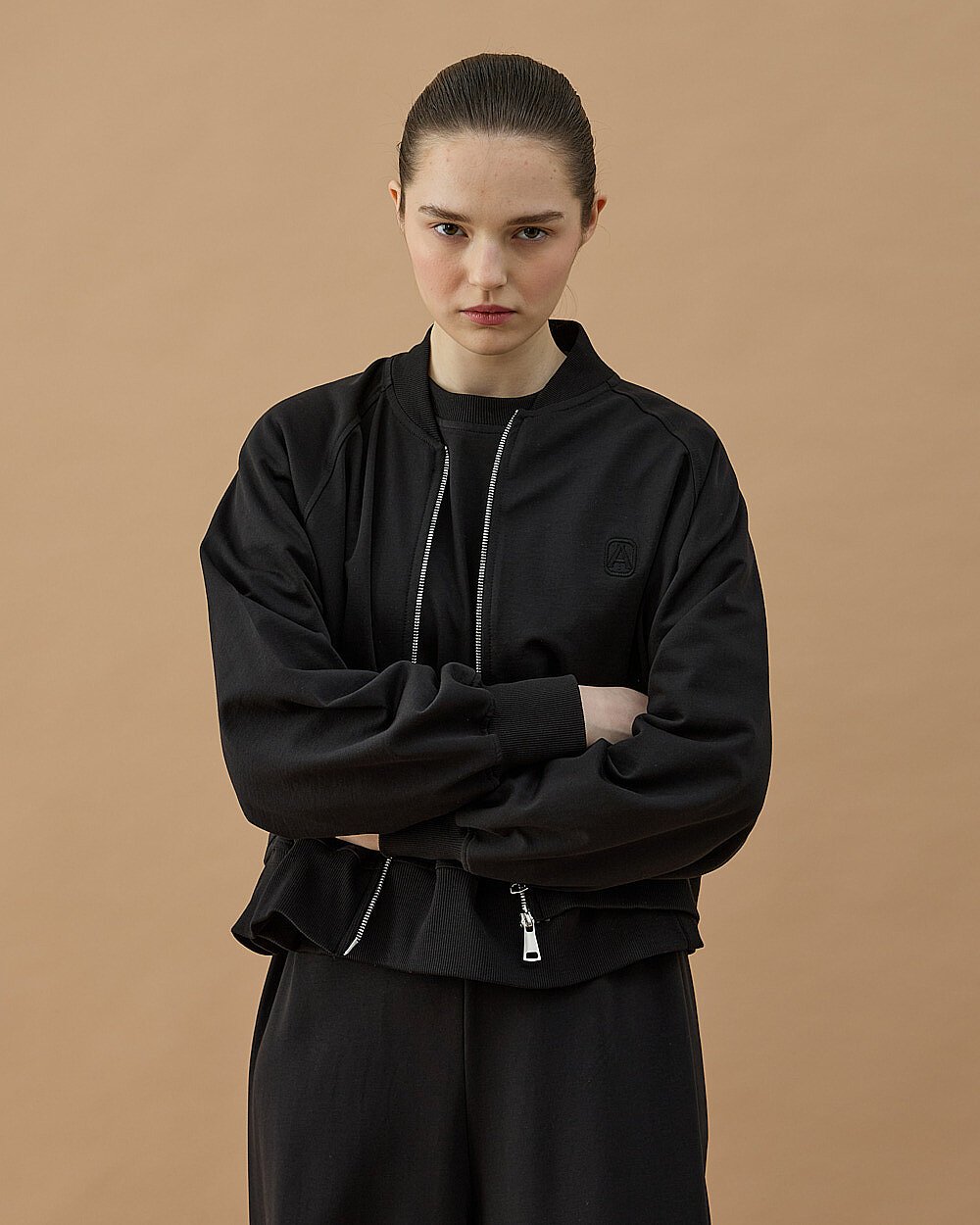 Cotton İki İplik Fermuarlı Bomber Ceket Siyah