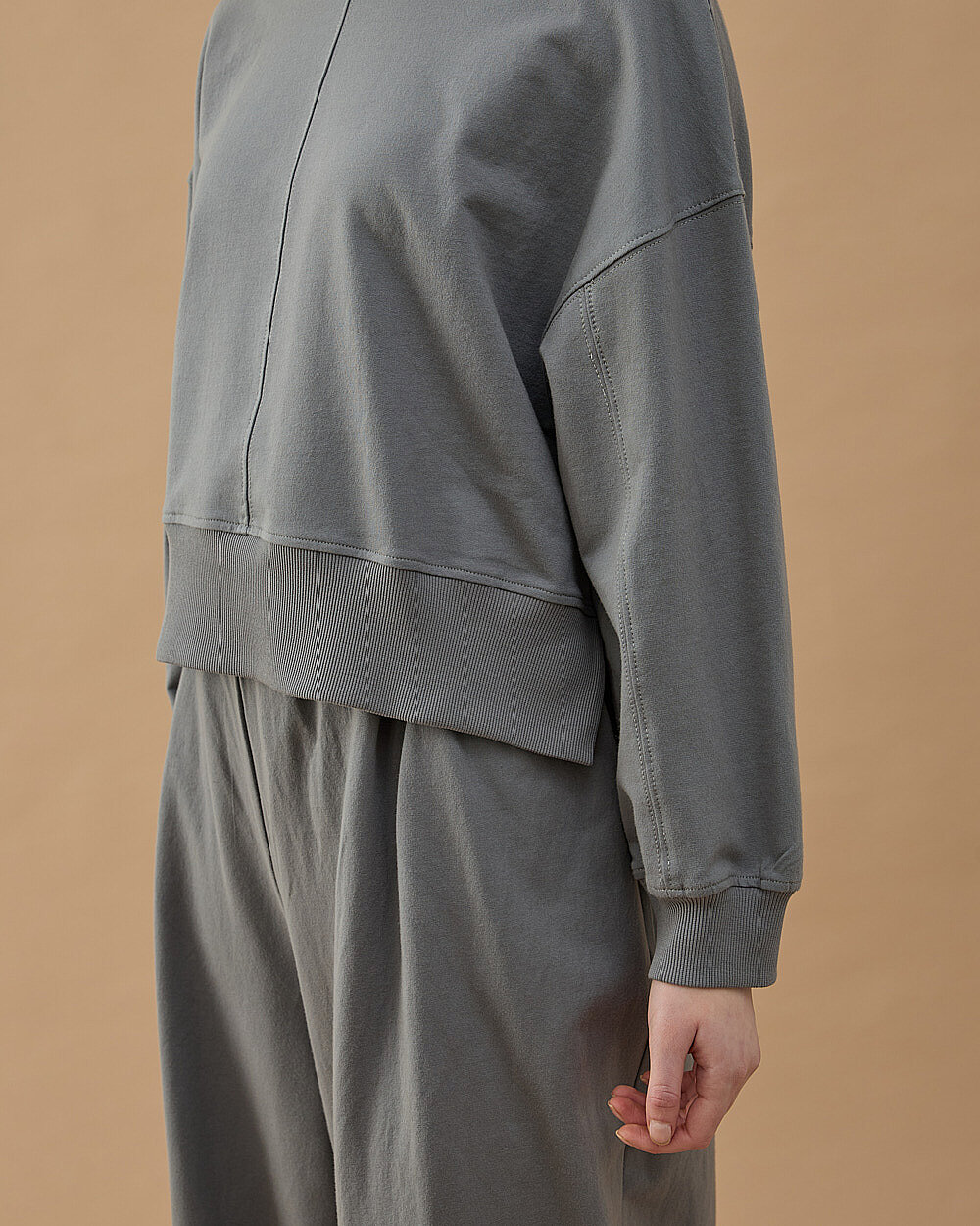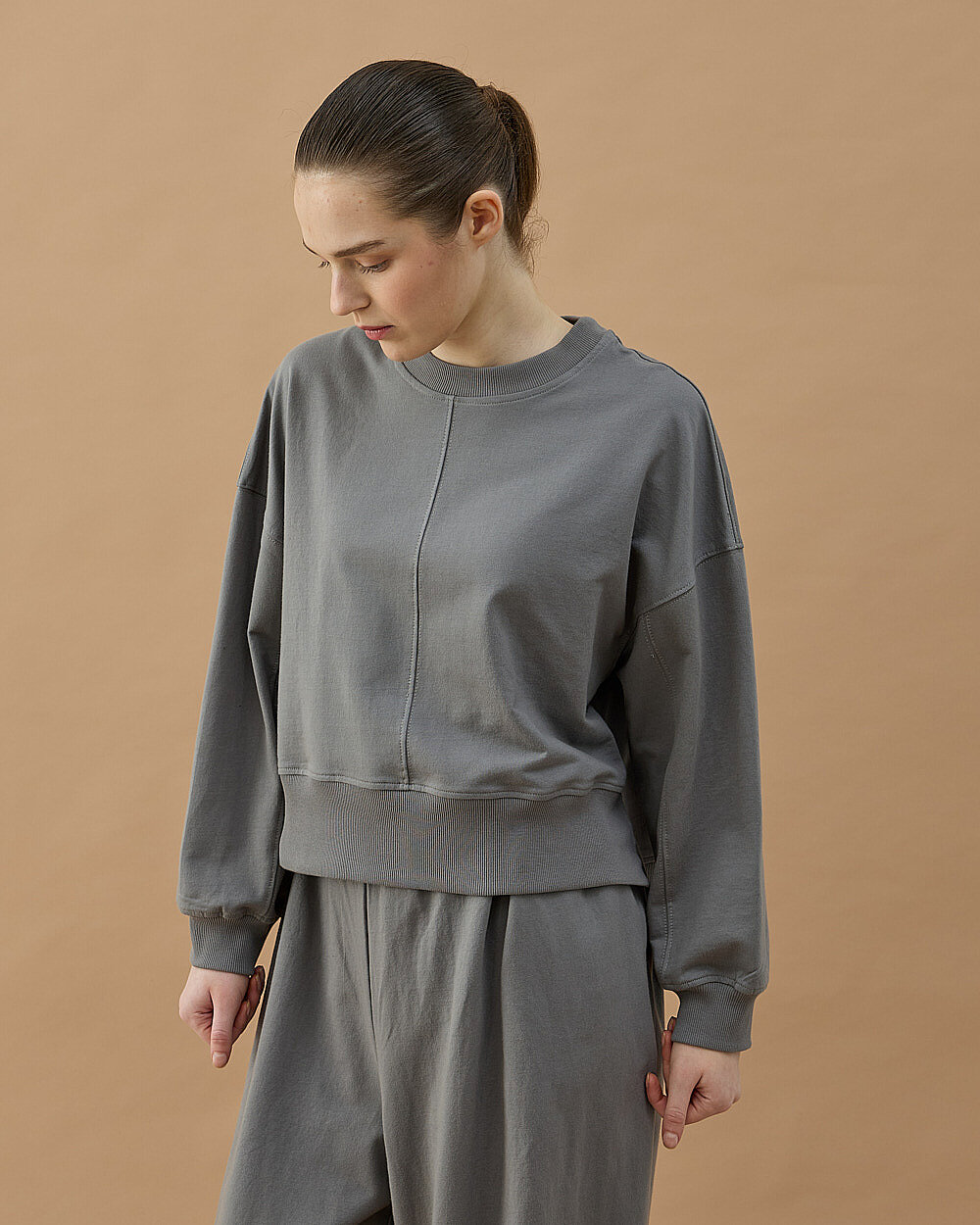 Cotton İki İplik Nervürlü Kesikli Kısa Sweat Gri