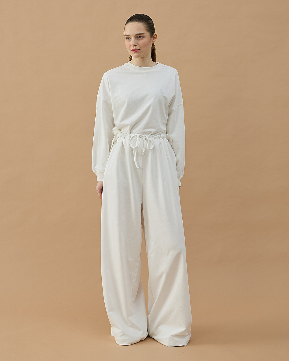 Cotton İki İplik Wide Leg Bol Eşofman Altı Ekru