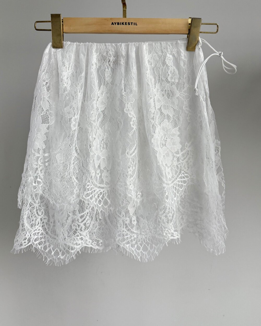 Dantel Çift Kat Yırtmaçlı Aksesuar İçlik Etek – Ekru
