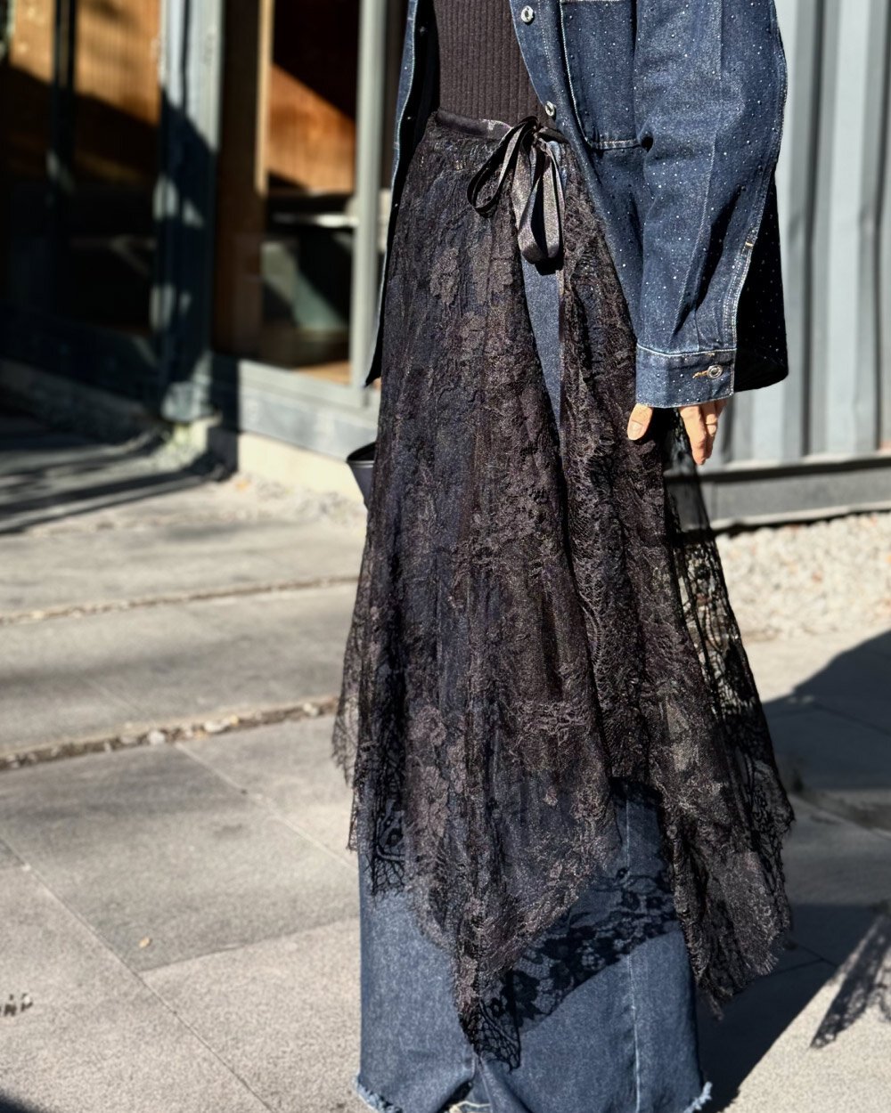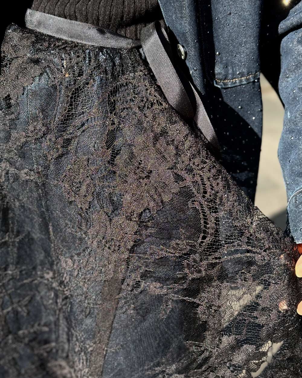 Dantel Pareo Yandan Bağlamalı Uzun İçlik Etek Siyah
