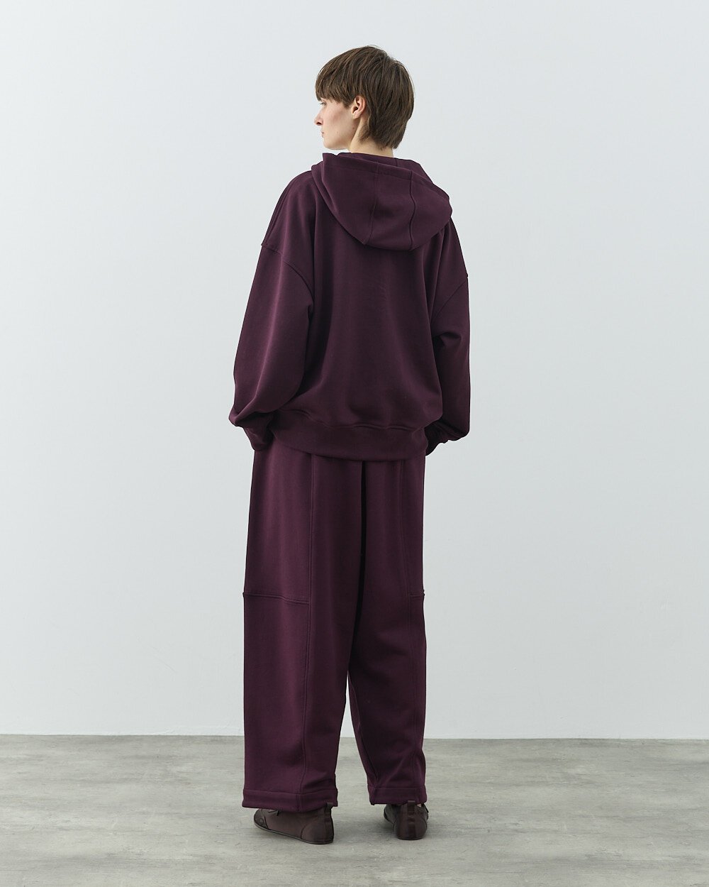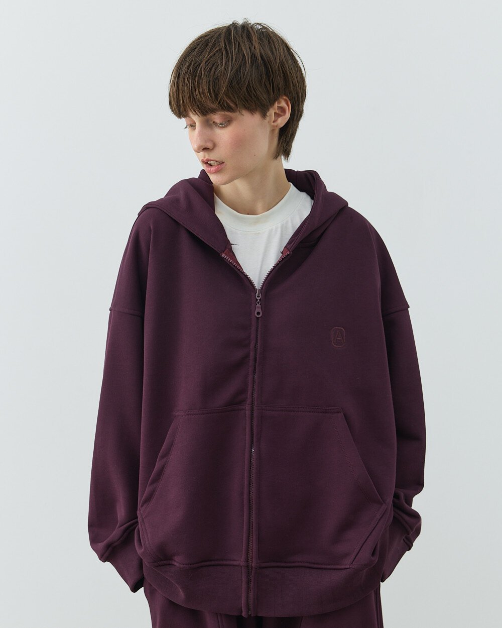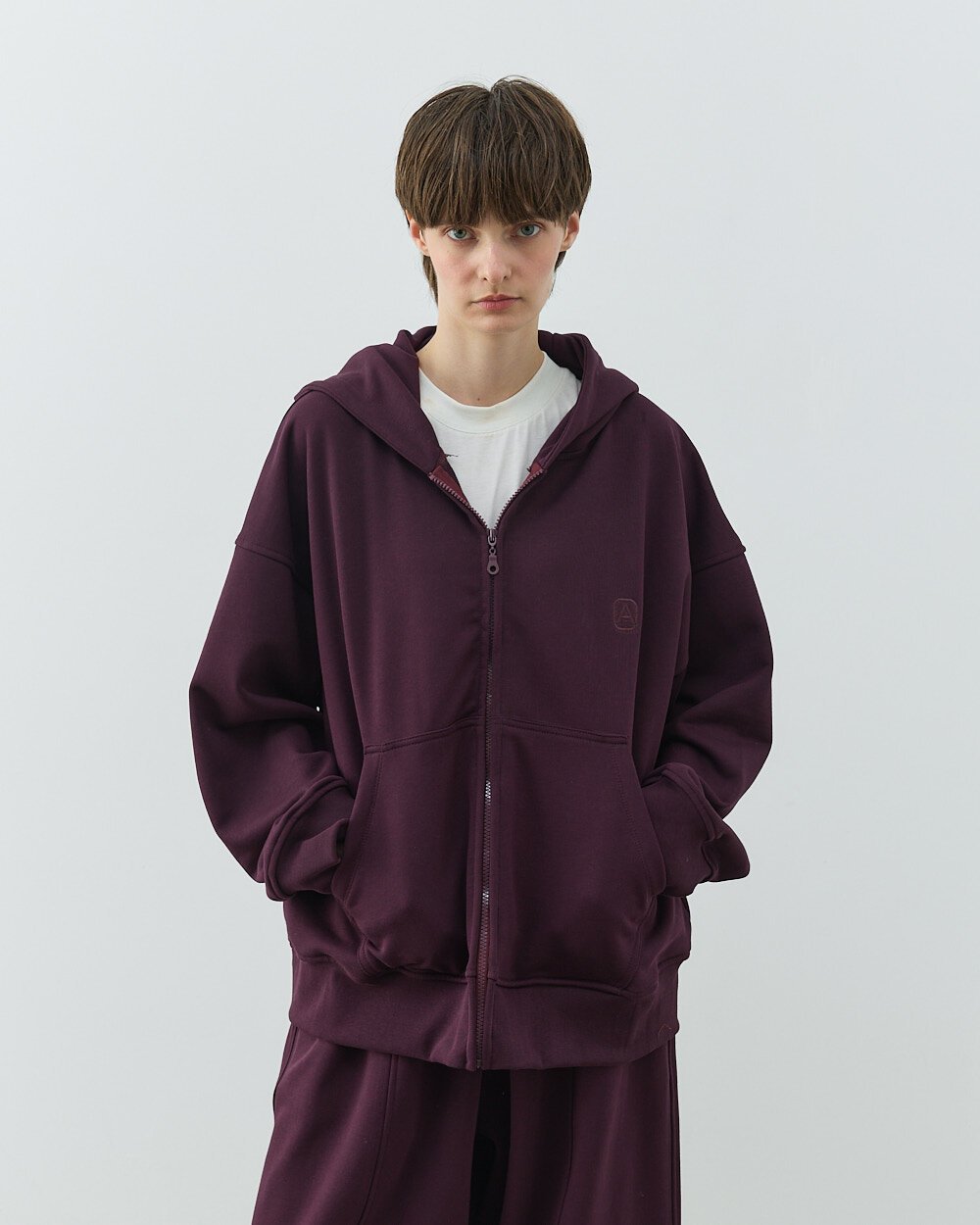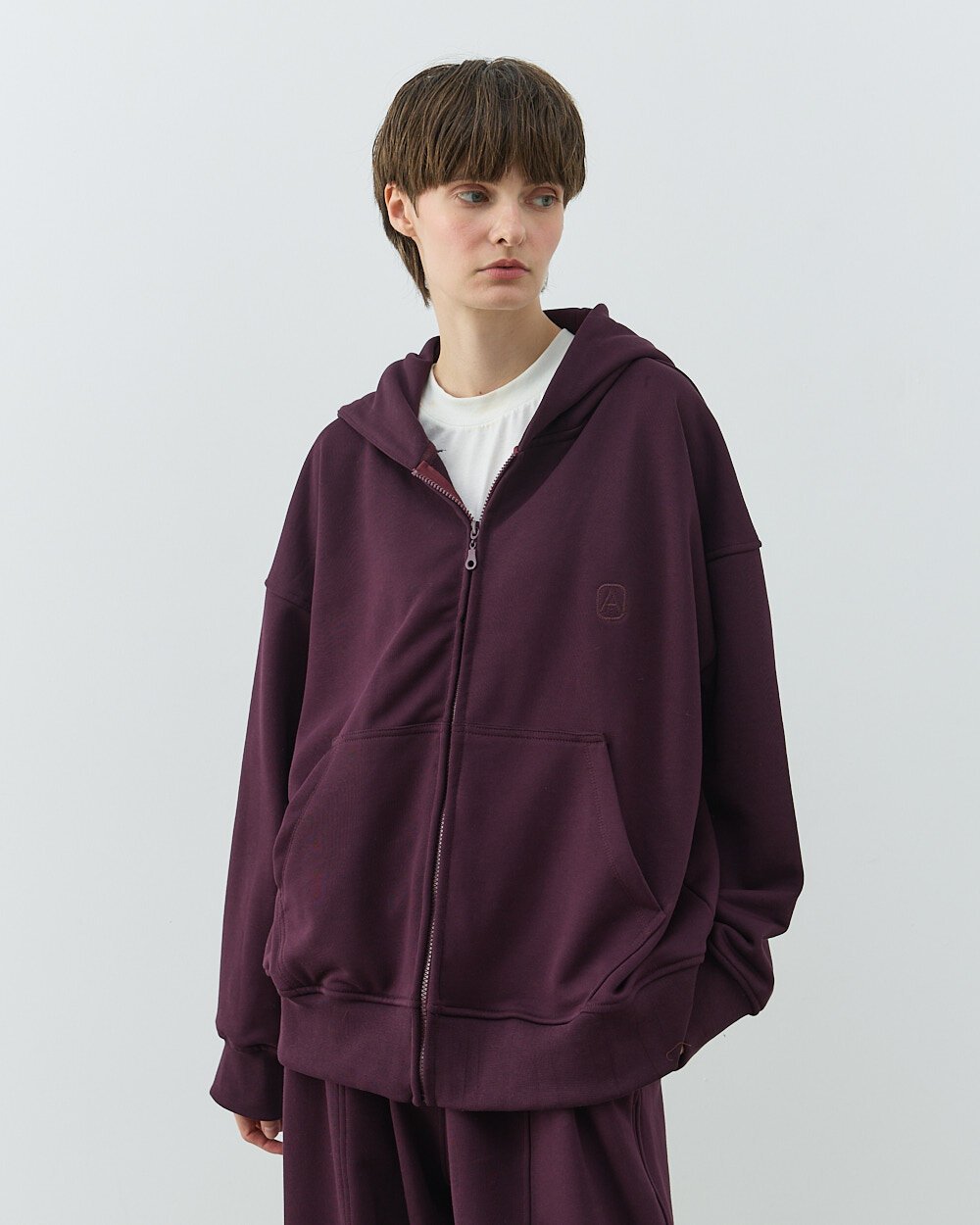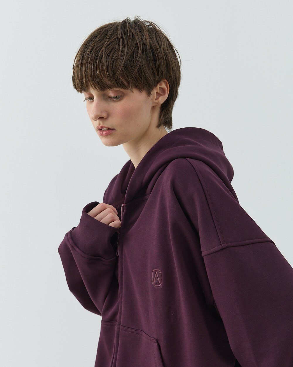 Diagonal Üç İplik Fermuarlı Kapüşonlu Sweatshirt Mürdüm