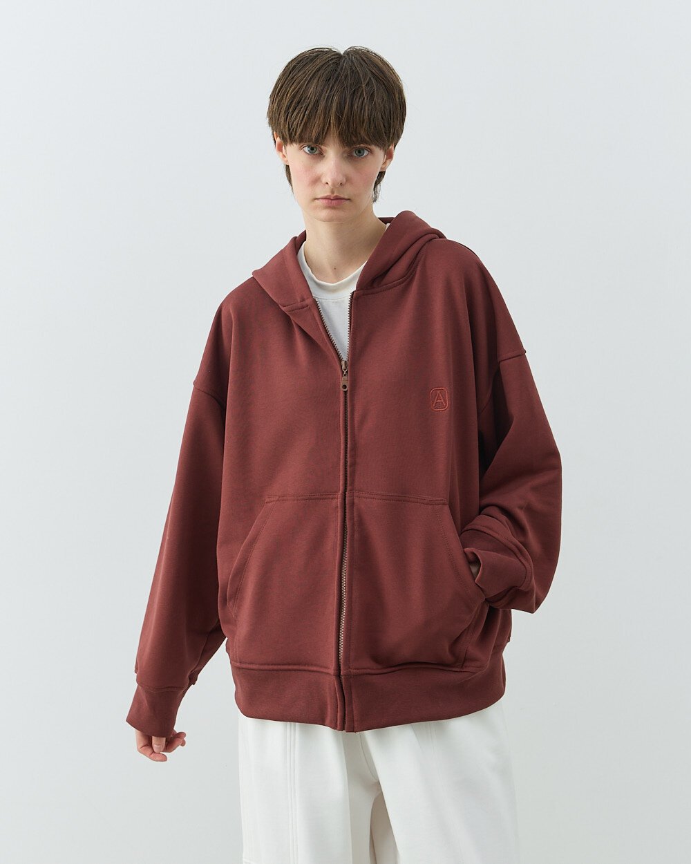 Diagonal Üç İplik Fermuarlı Kapüşonlu Sweatshirt Terra Cotta