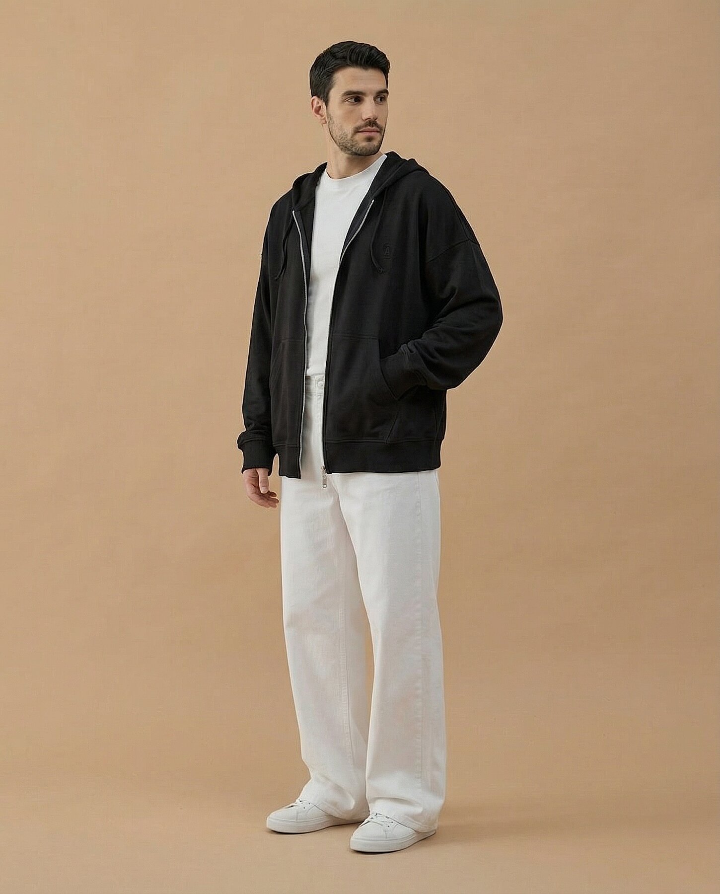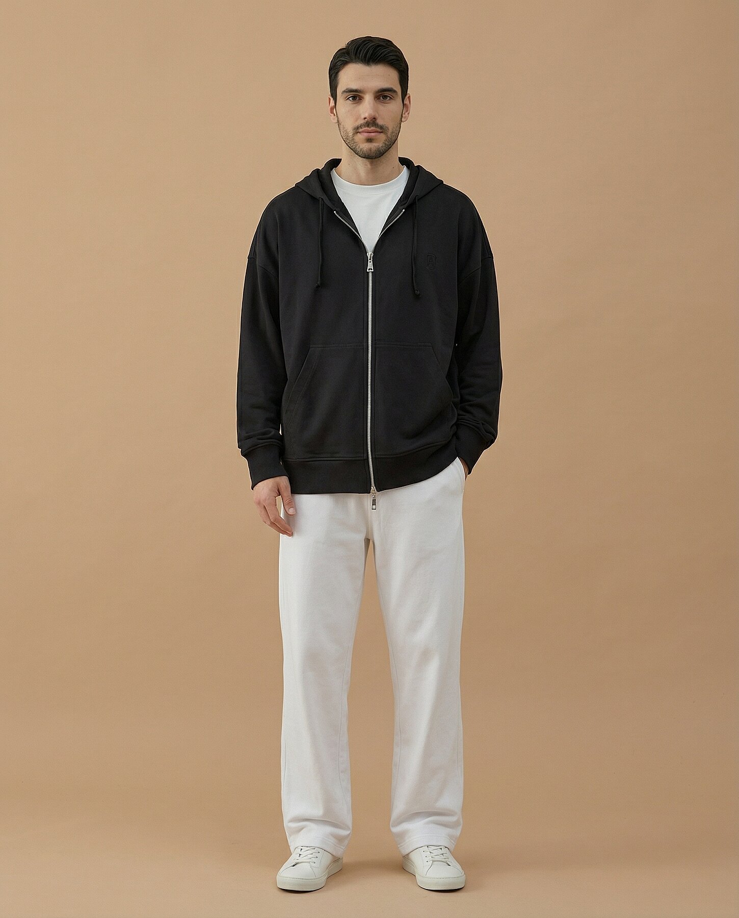 Detay: Cotton iki iplik kumaştan üretilen bu fermuarlı kapüşonlu sweatshirt, dayanıklı yapısı ve konfor odaklı tasarımıyla öne çıkar. Ön yüzeyde yer alan tam boy fermuar kolay kullanım sağlarken, kapüşonlu form ekstra koruma sunar. Rahat kalıp ve düşük omuz kesimi hareket özgürlüğünü artırır. Yan cepler fonksiyonel kullanım sağlarken, ribana detaylı kol ve etek uçları formun korunmasına yardımcı olur. Günlük kullanım için uygun olan model, aynı kumaş grubundaki alt parçalarla takım olarak da tercih edilebilir. Unisexdir.