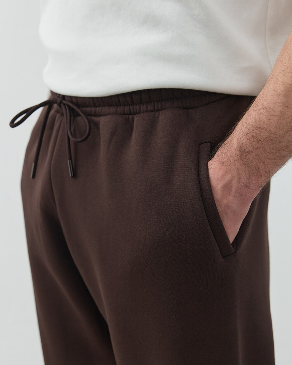 Erkek Şardonlu Üç İplik Paçası Lastikli Jogger Eşofman Altı Acı Kahve