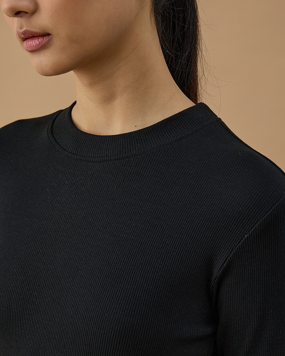 Fitilli Penye Kaşkorse Uzun Kollu Body Siyah