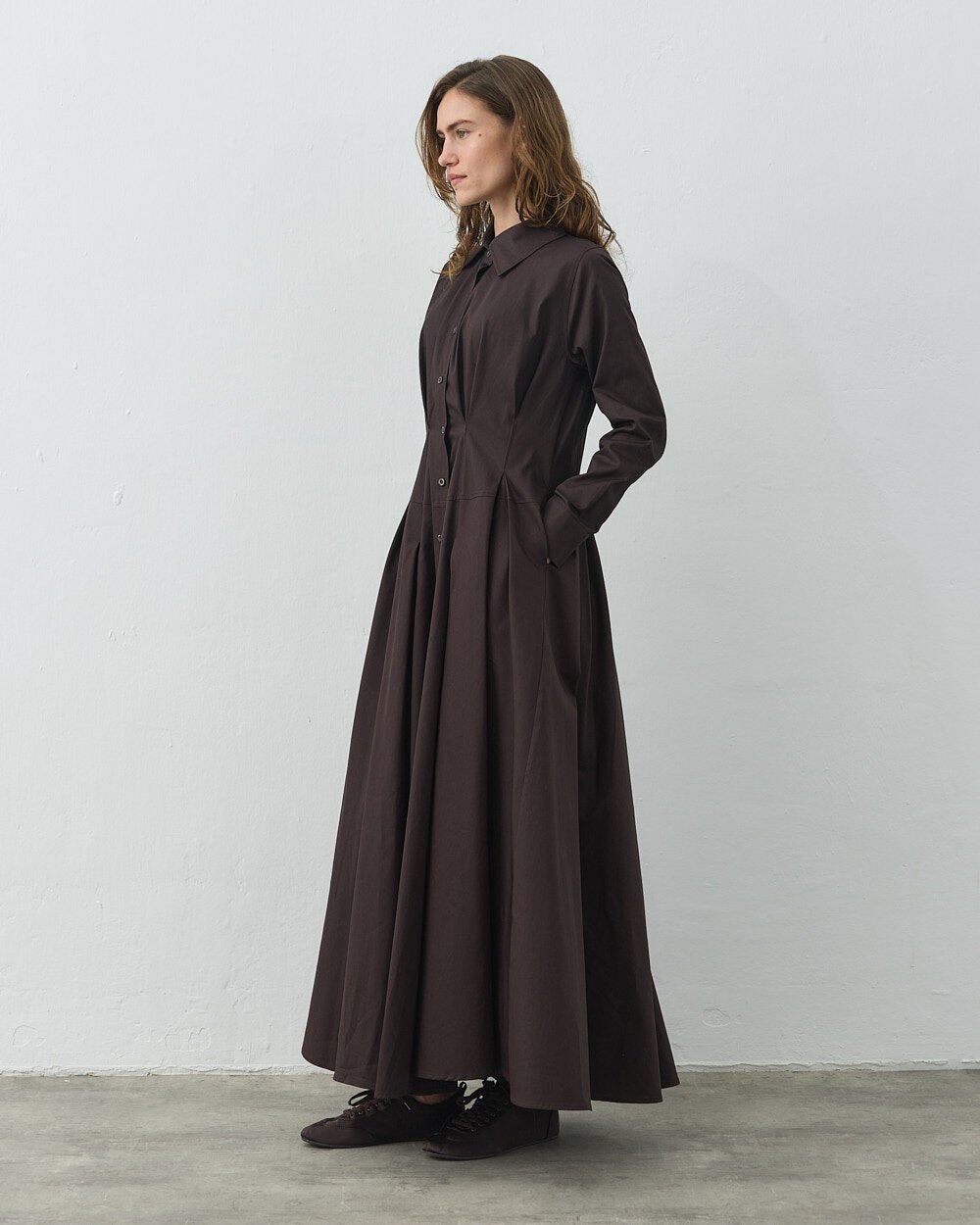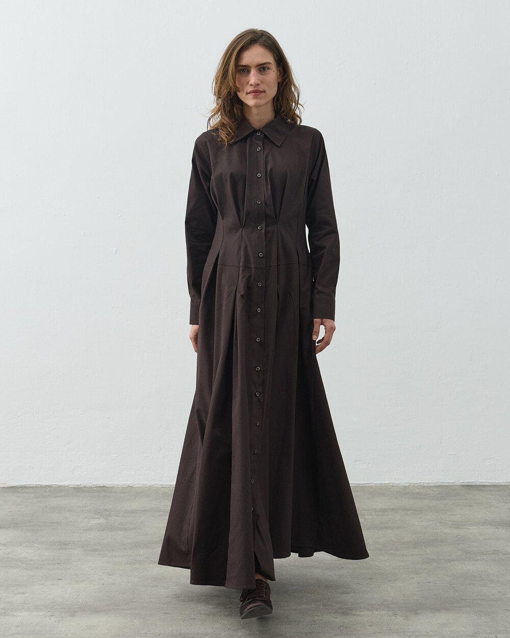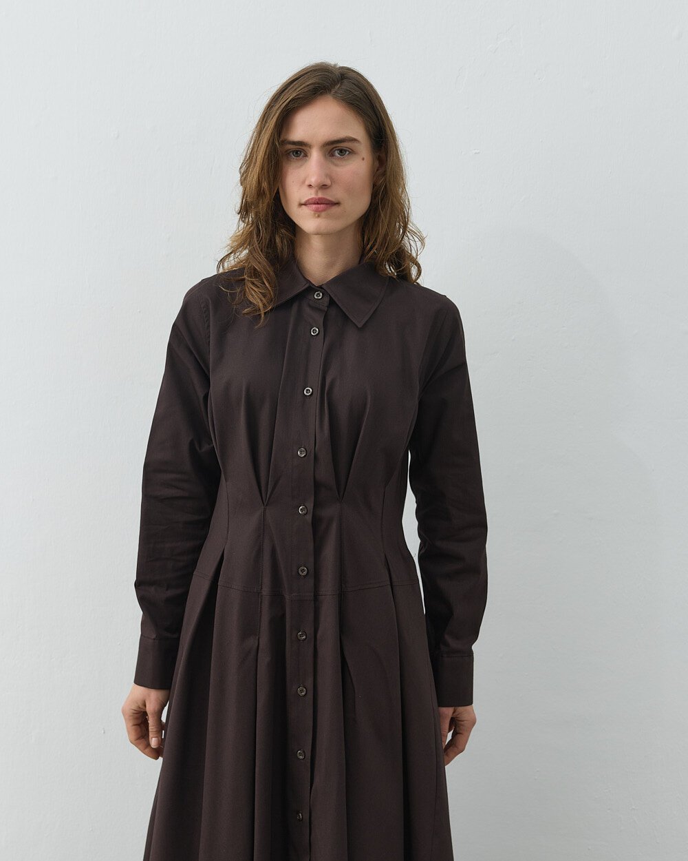 Gabardin Belden Kup Ve Pile Detaylı Elbise Acı Kahve