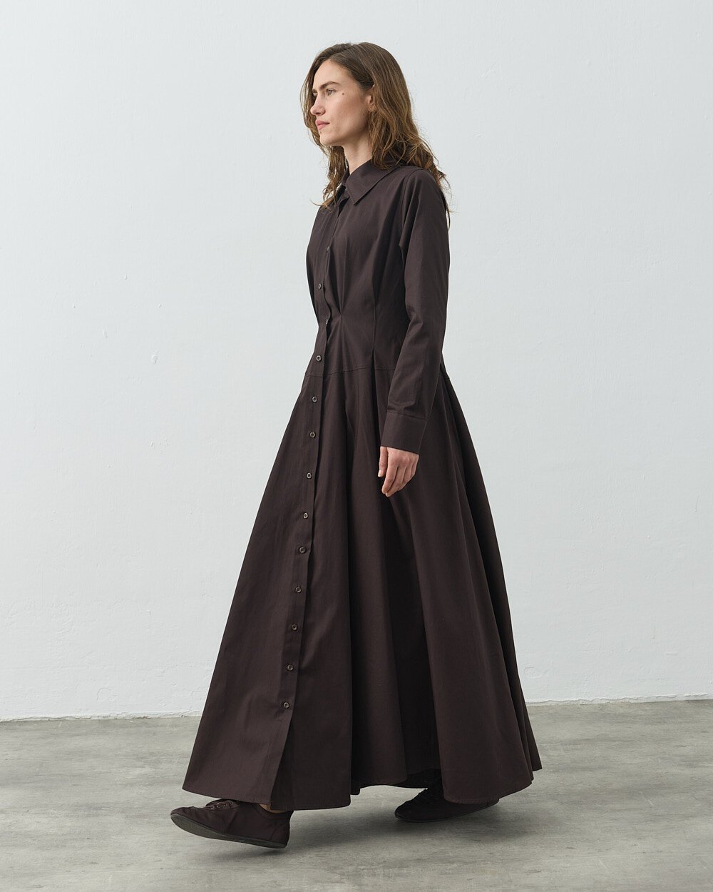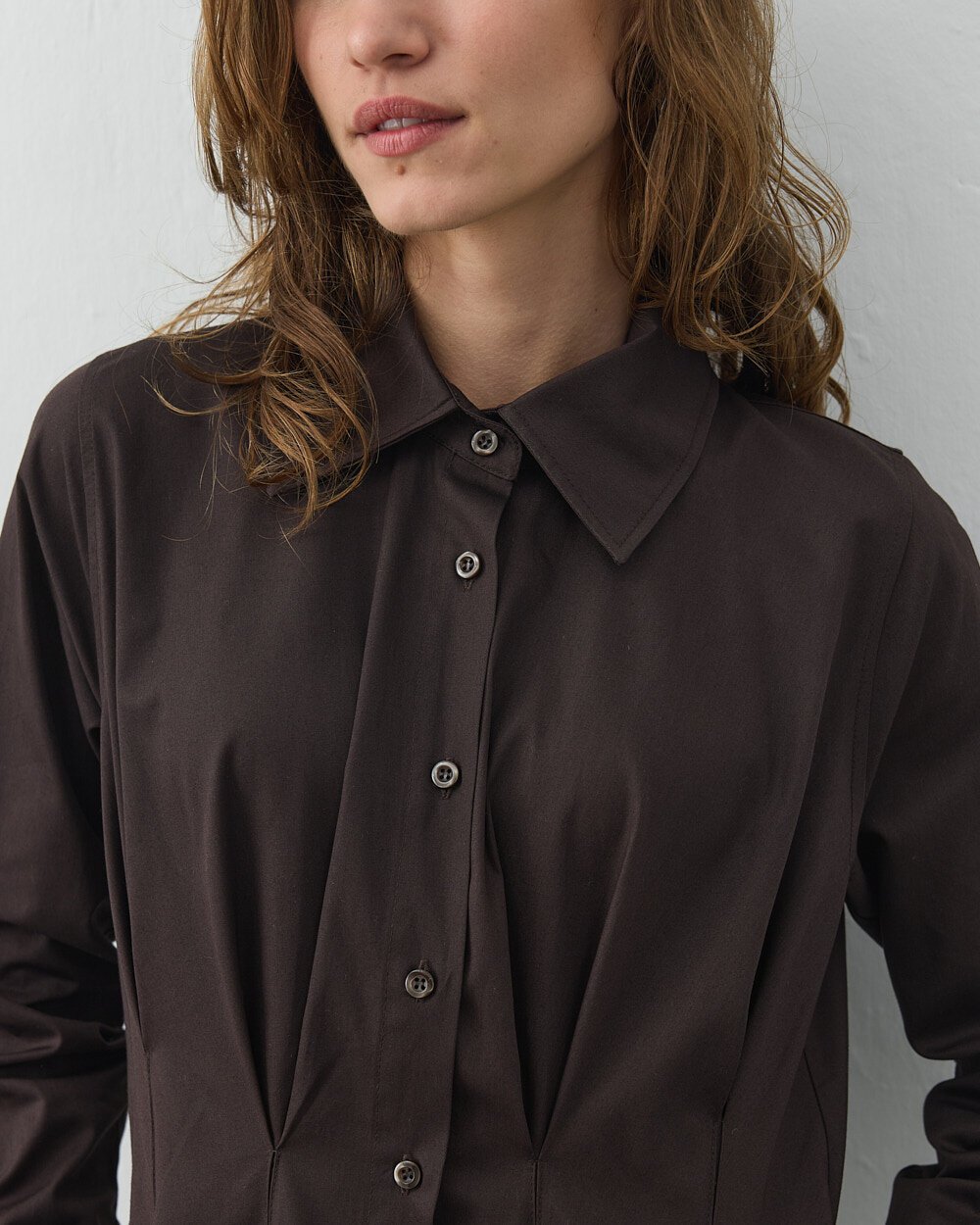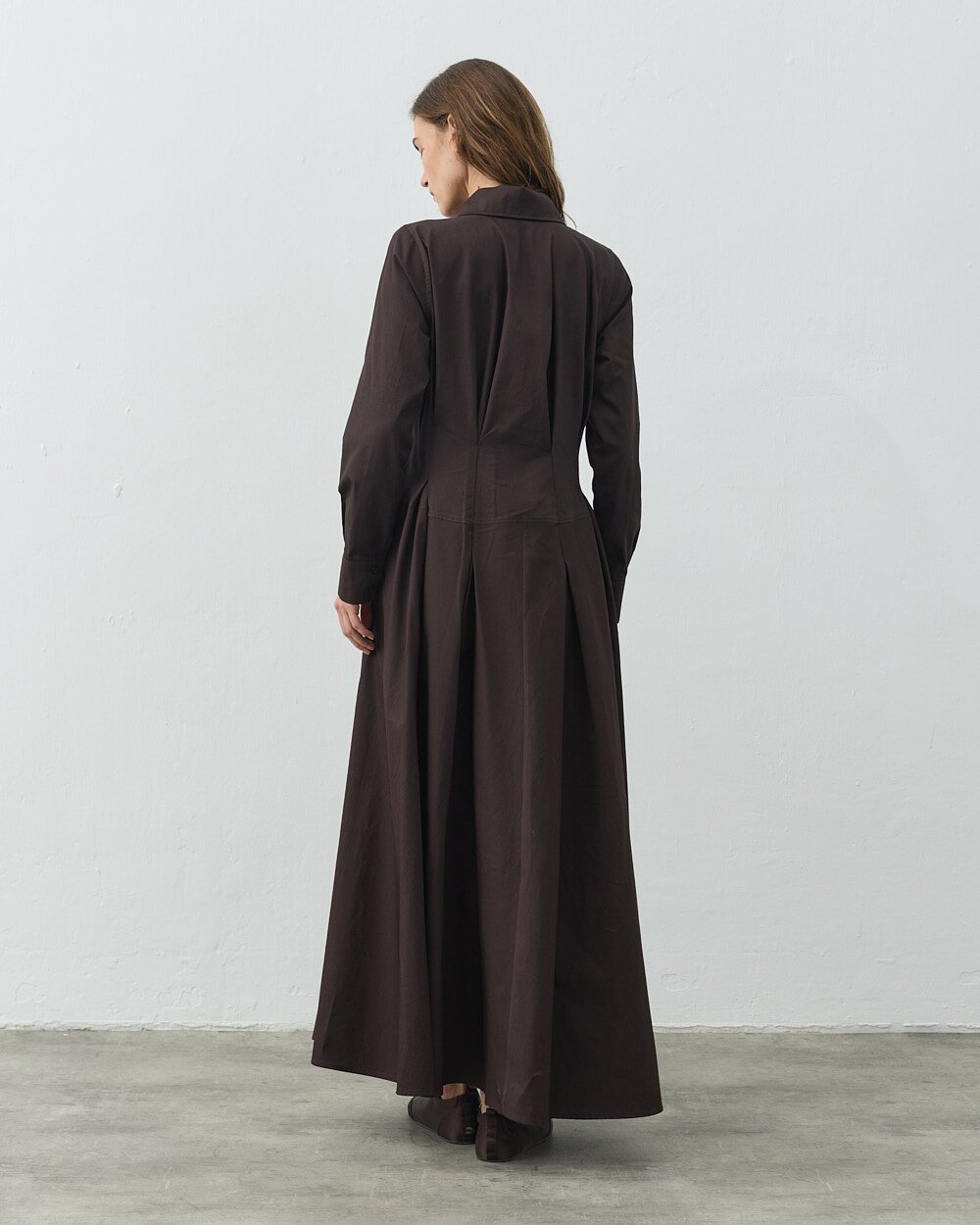 Gabardin Belden Kup Ve Pile Detaylı Elbise Acı Kahve