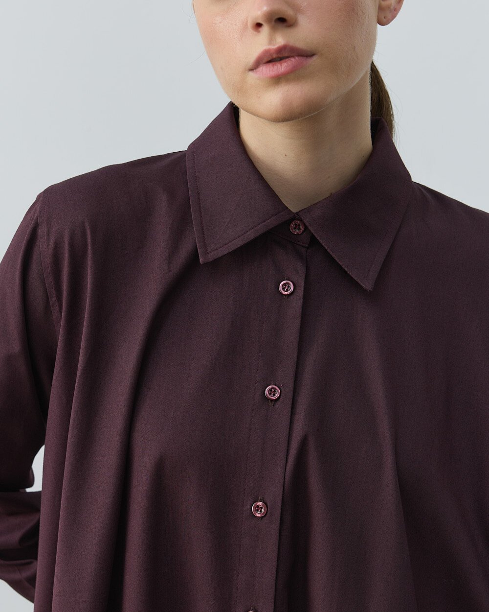 Gabardin Geniş Gömlek Elbise Mürdüm