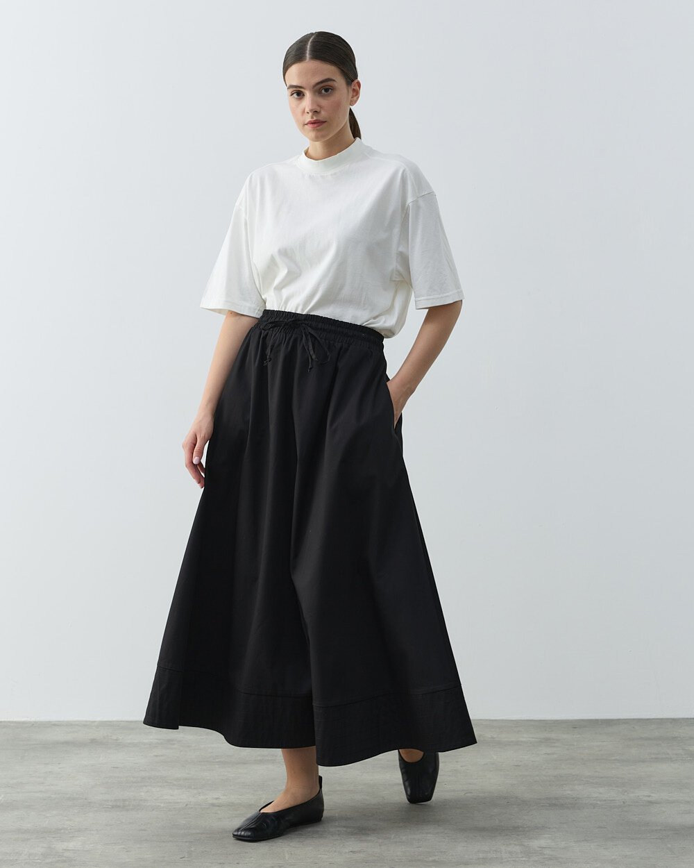 %100 pamuk ince gabardin kumaşıyla üretilen bu siyah etek, hem rahat hem de şık bir görünüm sunuyor. Bel kısmındaki lastik ve ayarlanabilir ip detayı, istenilen bedene göre rahatça uyum sağlamasına olanak tanır. Yan cep detayları ve etek ucundaki nervür dikişleri, eteğe hem işlevsellik hem de şıklık kazandırır. Volanlı ve rahat kalıbıyla günlük kullanım için ideal olan bu model, hem konforlu hem de göz alıcı bir tarz sunar. 34-44 arası bedenlere uyum sağlayan standart bedeni ile gardırobunuza pratik ve zarif bir parça ekleyebilirsiniz.