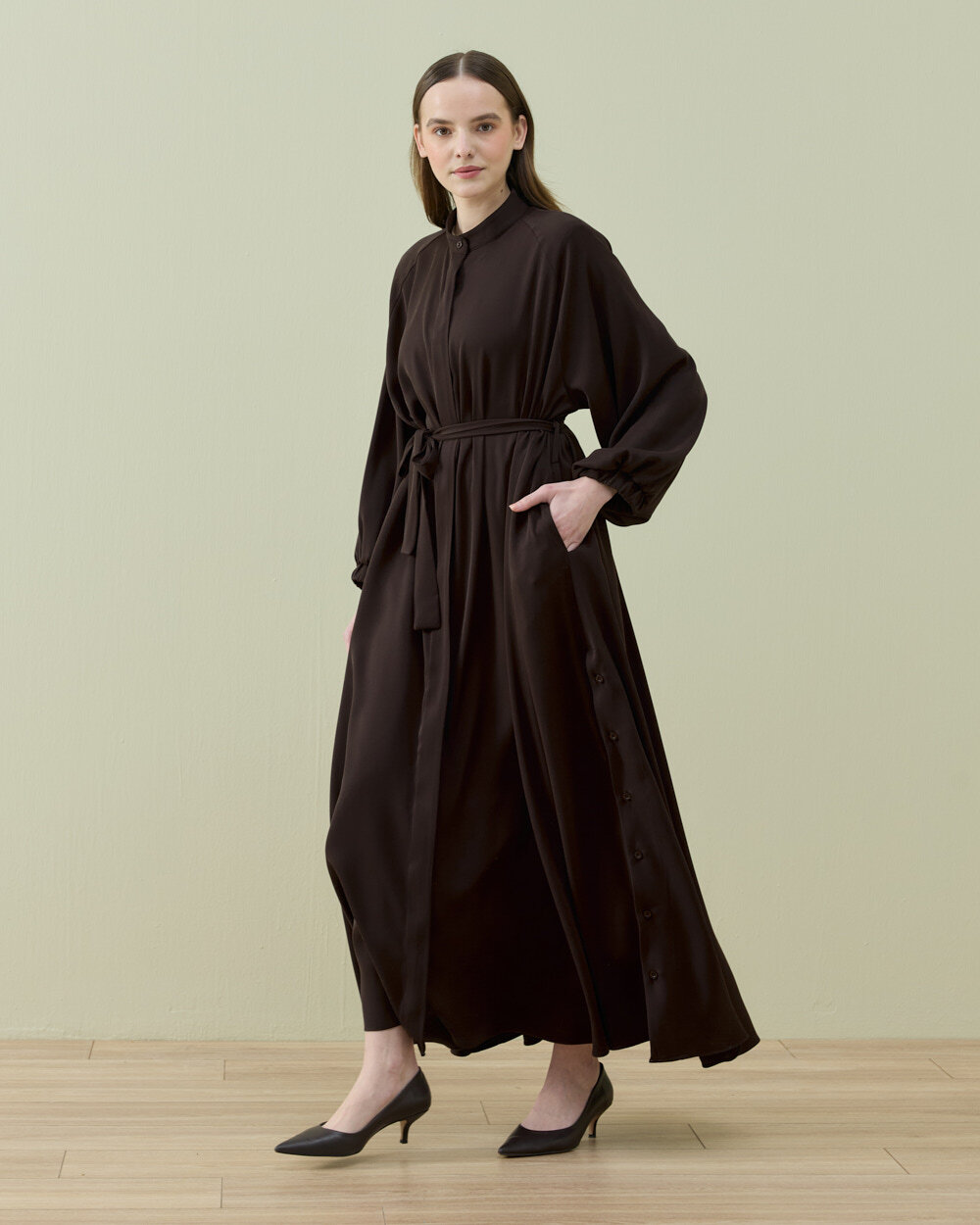 Krep Yandan Yırtmaçlı Düğmeli Abaya – Şıklık ve Konforun Buluştuğu Tasarım!