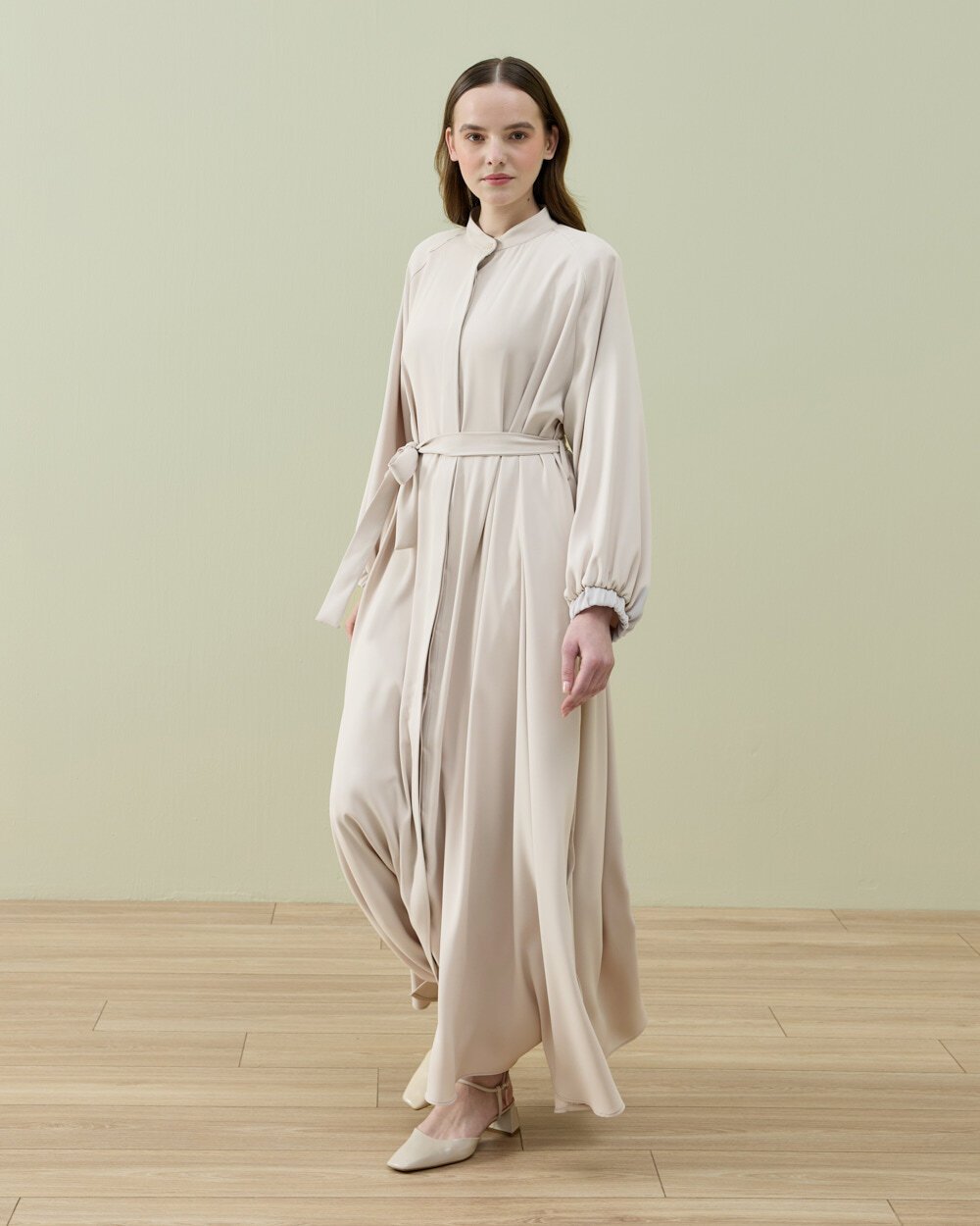 Detay: Hakim yakalı ve önden komple düğmelidir. İki yandan düğmeli ve belden kuşaklıdır. Manşeti lastikli ve büzgülüdür. Astarsızdır.
