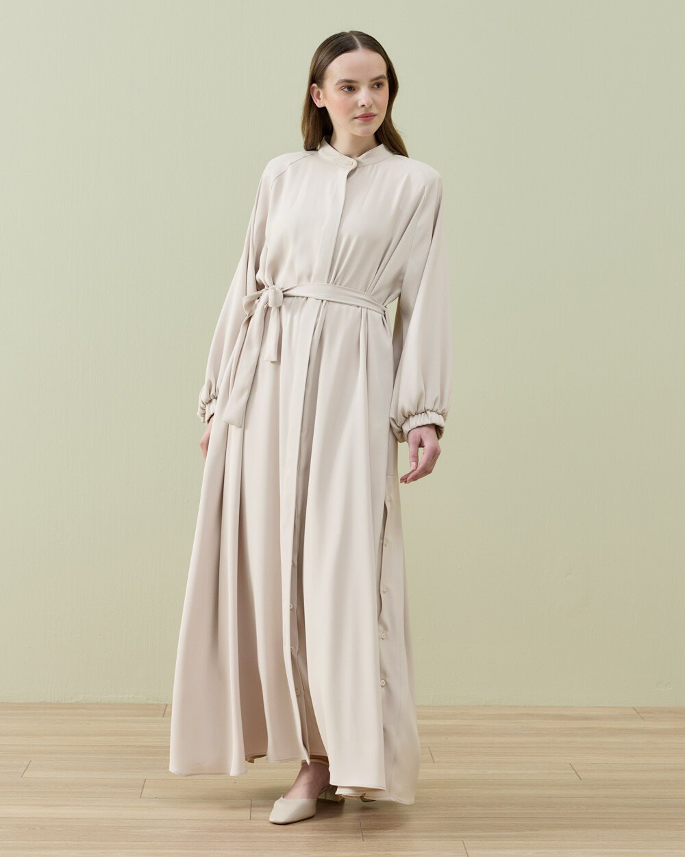 Krep Yandan Yırtmaçlı Düğmeli Abaya – Şıklık ve Konforun Buluştuğu Tasarım!