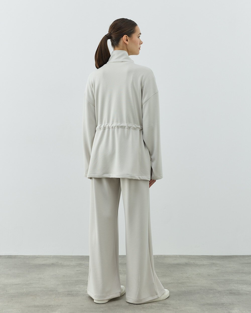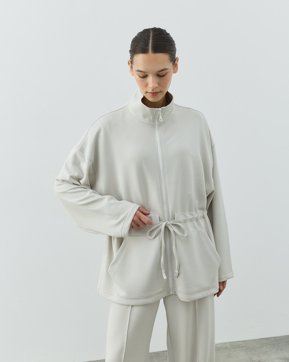 Modal Soft Touch Tünelli Fermuarlı Hırka Taş