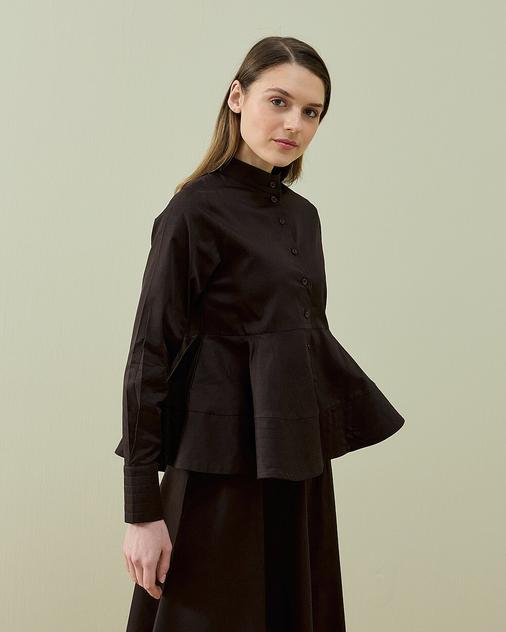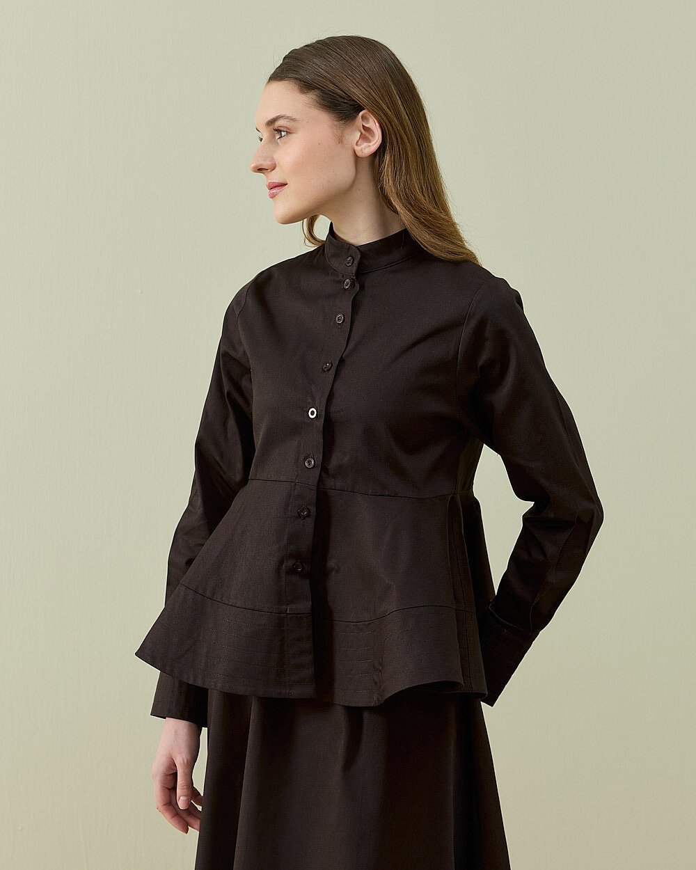 Minimal ve şık tasarımıyla öne çıkan bu gömlek, günlük ve klasik kombinlerde rahatlıkla kullanılabilir. Bel kısmındaki hafif volan formu ürüne feminen bir duruş kazandırırken, düğmeli ön yapısı kullanım kolaylığı sağlar. Dik yaka detayı ile modern bir görünüm sunar. Gün boyu konforlu kullanım sağlayan yapısıyla dolabınızın kurtarıcı parçalarından biri olmaya aday.