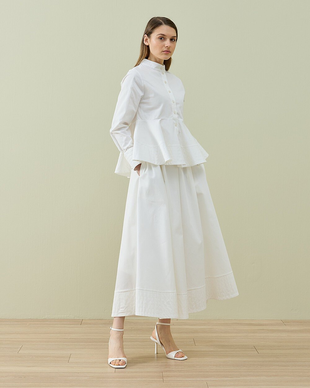 Minimal ve şık tasarımıyla öne çıkan bu gömlek, günlük ve klasik kombinlerde rahatlıkla kullanılabilir. Bel kısmındaki hafif volan formu ürüne feminen bir duruş kazandırırken, düğmeli ön yapısı kullanım kolaylığı sağlar. Dik yaka detayı ile modern bir görünüm sunar. Gün boyu konforlu kullanım sağlayan yapısıyla dolabınızın kurtarıcı parçalarından biri olmaya aday.