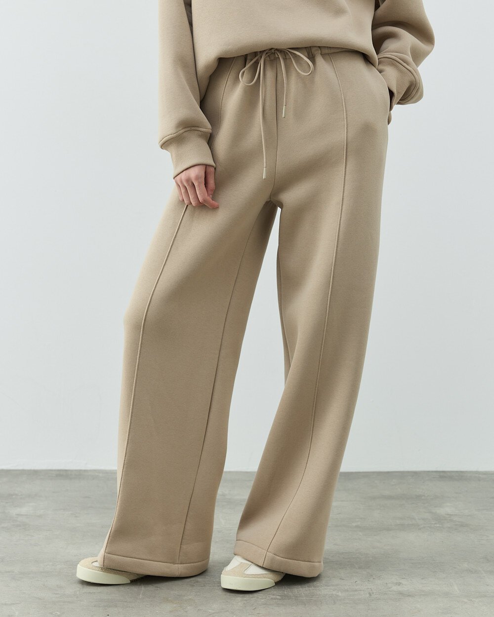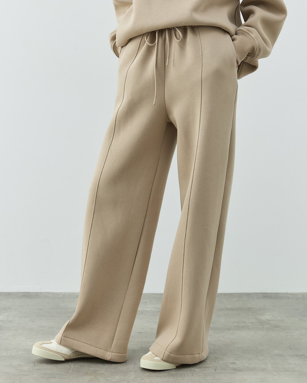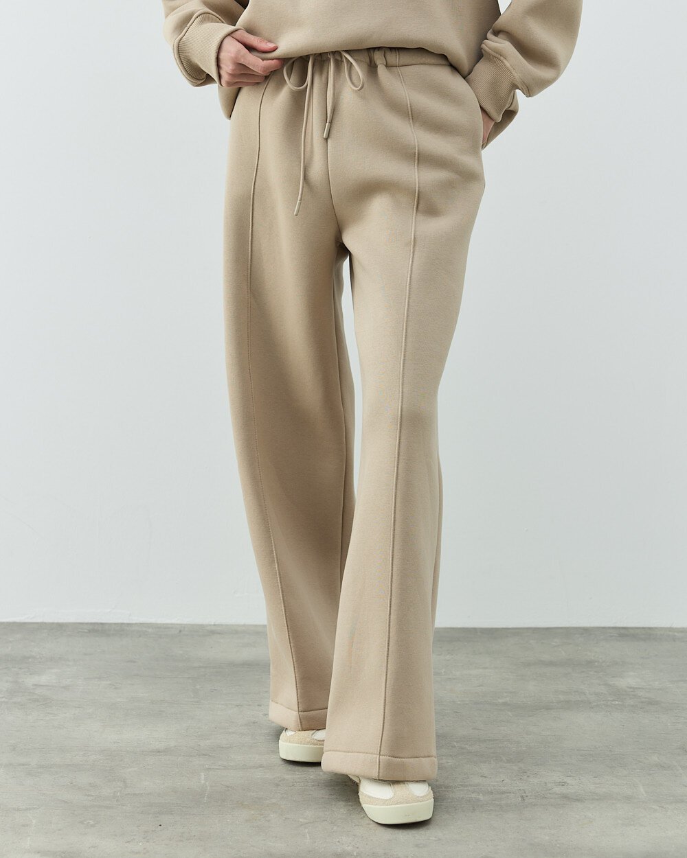 Şardonlu Üç İplik Straight Fit Nervürlü Eşofman Altı Taş