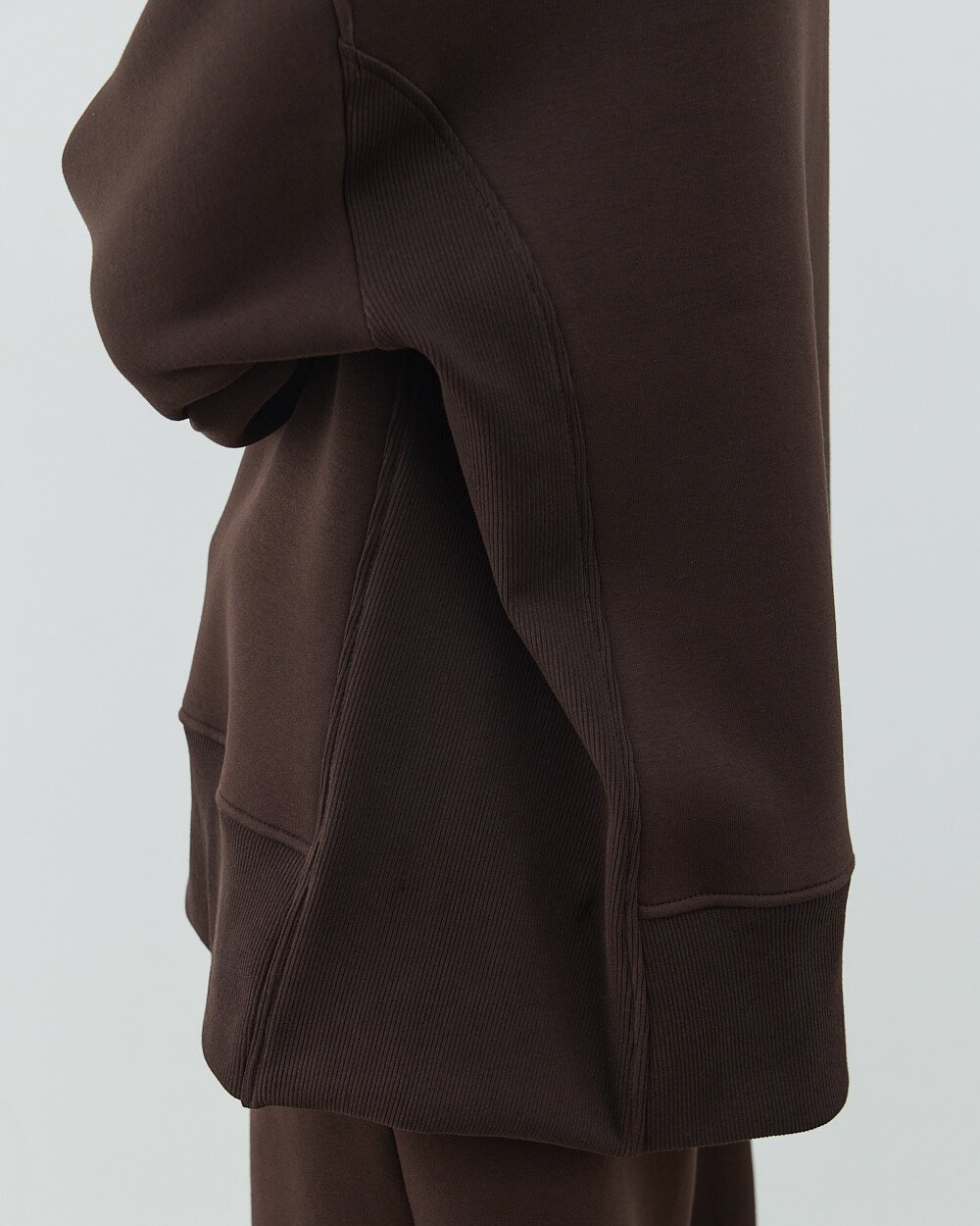 Konfor ve şıklığı bir araya getiren Şardonlu Üç İplik Yanı Ribanalı Stil Sweatshirt, salaş ve bol kesimiyle rahat bir kullanım sunarken, stilinize modern bir dokunuş katıyor. Üste oturmayan oversize yapısı, %65 pamuk, %30 polyester ve %5 likra karışımından oluşan şardonlu üç iplik kumaşıyla birleşerek hem yumuşak hem de dayanıklı bir yapı sunar. Yanlardaki ribana detayları ile hareket özgürlüğünüzü artıran bu sweatshirt, bordo rengin zarif şıklığıyla her kombinize uyum sağlar.73 cm boyu, 120 cm göğüs ve bel genişliği ile geniş bir kalıba sahip olan bu sweatshirt, salaş tarzı ile rahatlıkla günlük kullanımda tercih edilebilir. Yakadan kola uzunluğu 70 cm olan bu model, geniş kol yapısı ve 40 cm pazu genişliği ile maksimum rahatlık sağlar. Standart beden (34-42) uyumluluğu ile geniş bir beden aralığına uygun olarak tasarlanmıştır.Manken ölçüsü: 36 beden / 176 cm.Bu ribanalı stil sweatshirt, soğuk günlerde sıcak kalmanızı sağlarken, modern ve sportif tarzınıza şıklık katacak.