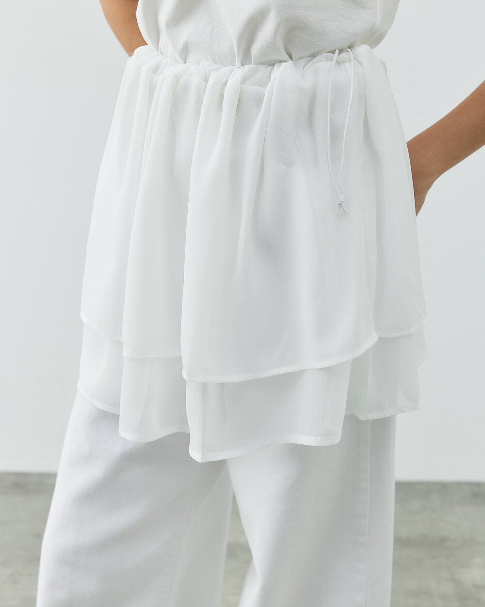 Şifon Fonksiyonel Katlı İçlik Etek - Ekru
