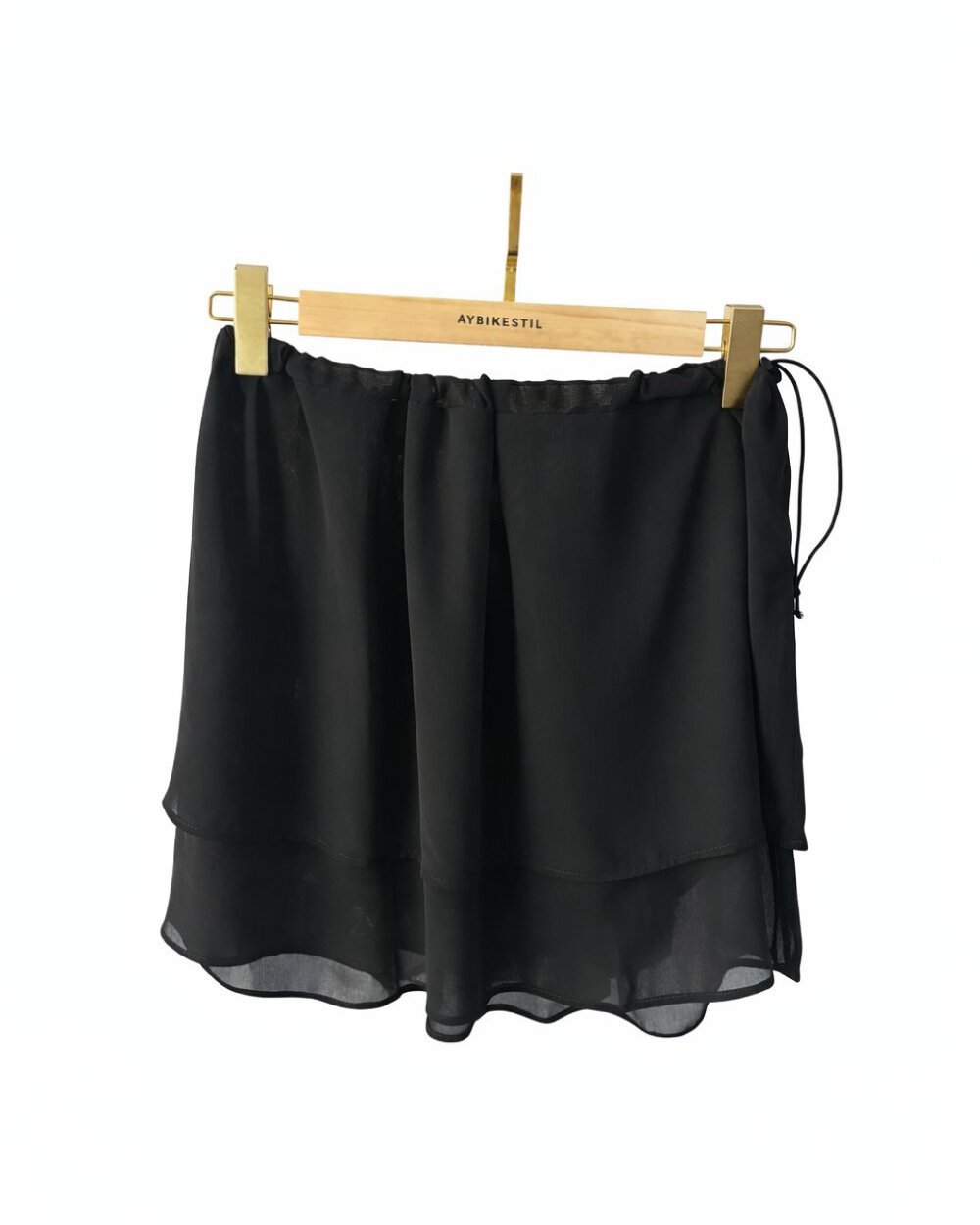 Şifon Fonksiyonel Katlı İçlik Etek - Siyah