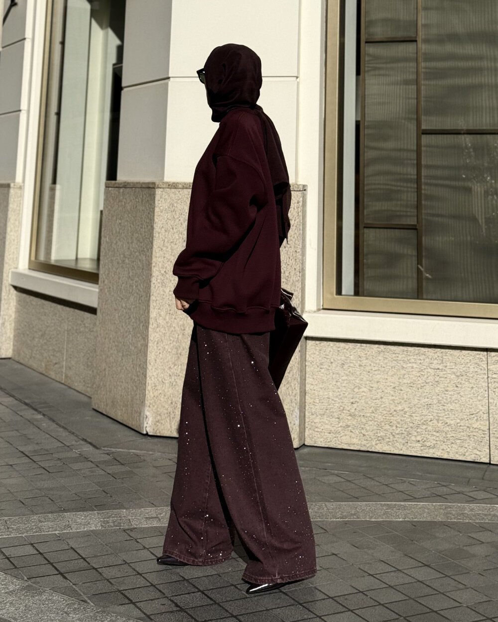 Detay: Baggy fit kesimiyle gün boyu konfor sunan bu jean, modern ve rahat stilin anahtar parçasıdır. Yüksek bel formu vücut hatlarını dengeli gösterirken, bol paça yapısı hareket özgürlüğü sağlar. Mürdüm rengiyle klasik jeanlerden ayrışır ve kombinlere güçlü bir karakter katar. Ön ve arka cep detaylarıyla fonksiyonel, fermuarlı ve düğmeli yapısıyla kullanımı pratiktir.