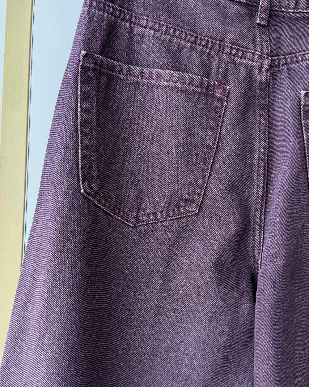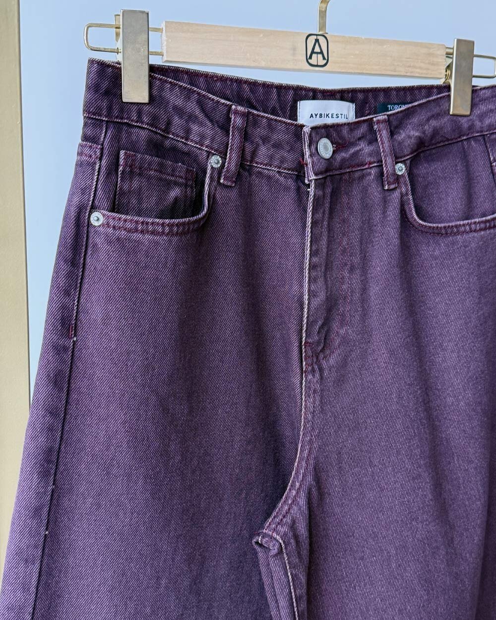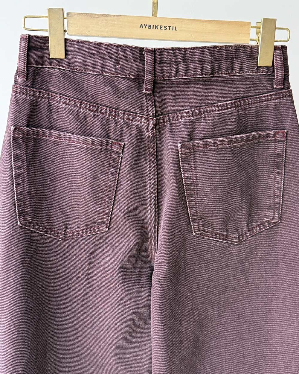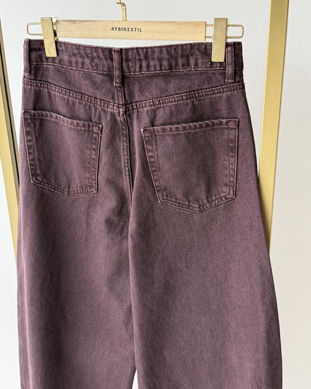 Detay: Baggy fit kesimiyle gün boyu konfor sunan bu jean, modern ve rahat stilin anahtar parçasıdır. Yüksek bel formu vücut hatlarını dengeli gösterirken, bol paça yapısı hareket özgürlüğü sağlar. Mürdüm rengiyle klasik jeanlerden ayrışır ve kombinlere güçlü bir karakter katar. Ön ve arka cep detaylarıyla fonksiyonel, fermuarlı ve düğmeli yapısıyla kullanımı pratiktir.