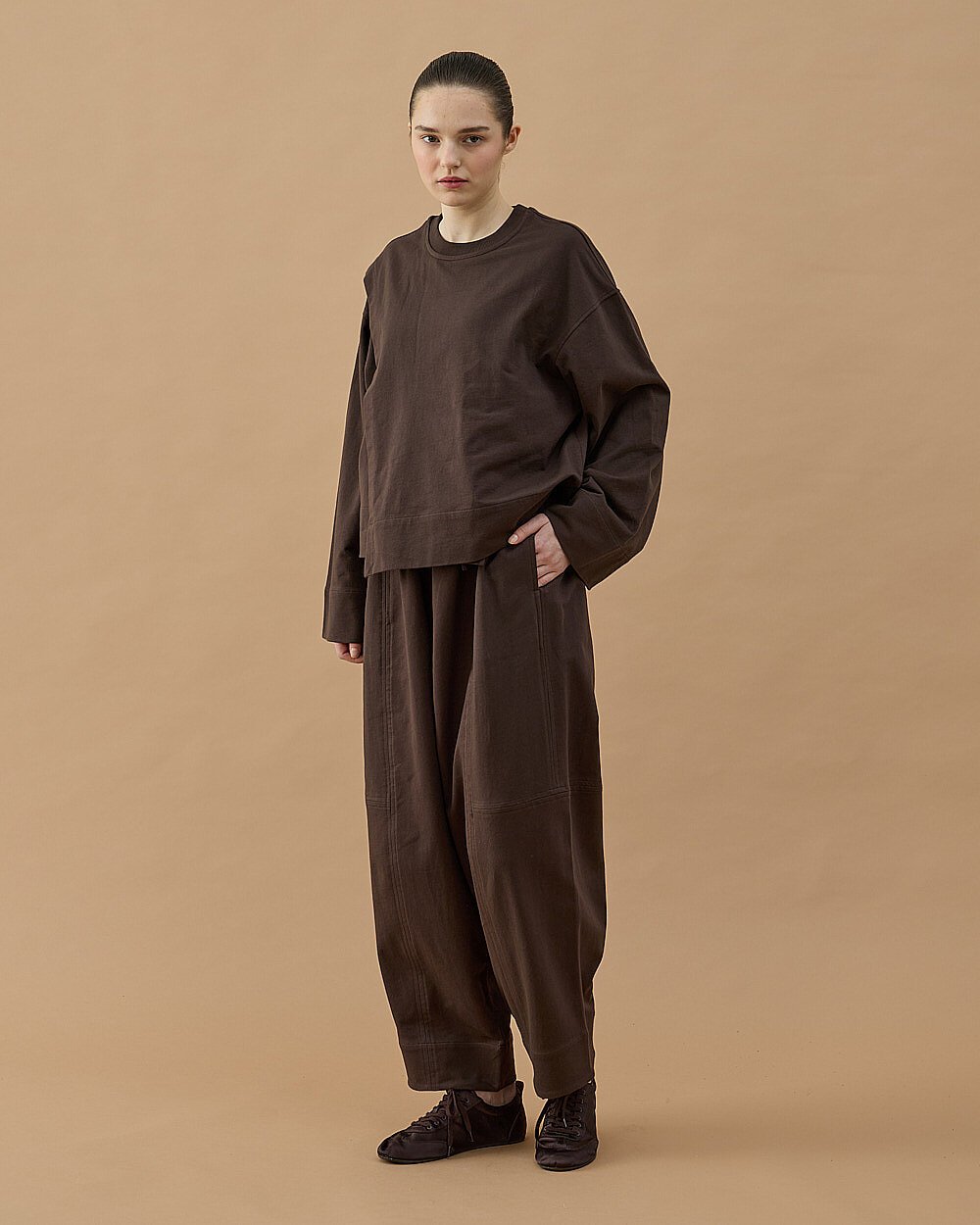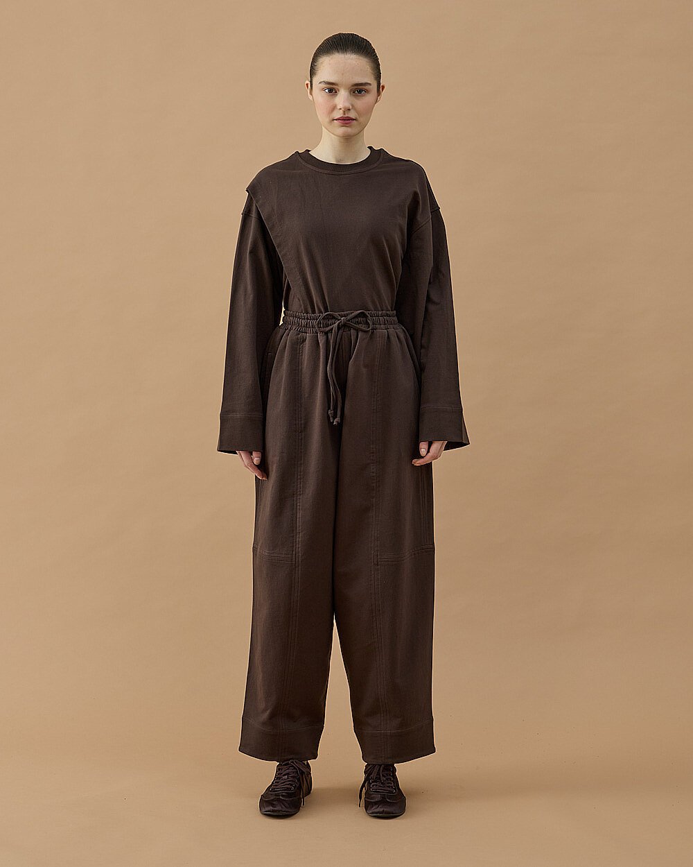 Cotton İki İplik Bol Balon Fit Kesikli Eşofman Altı Kahve