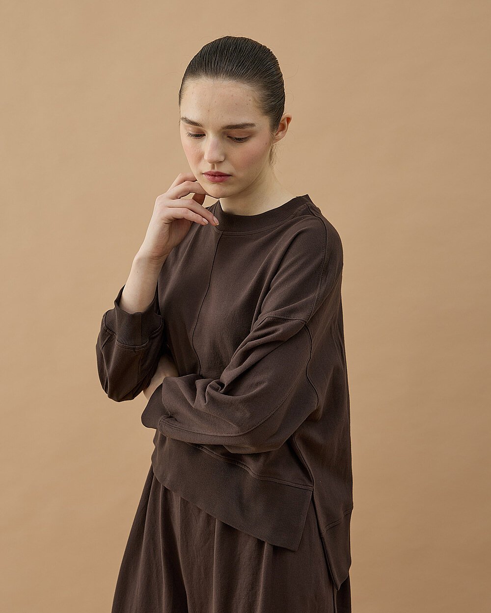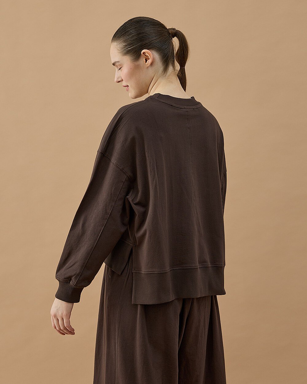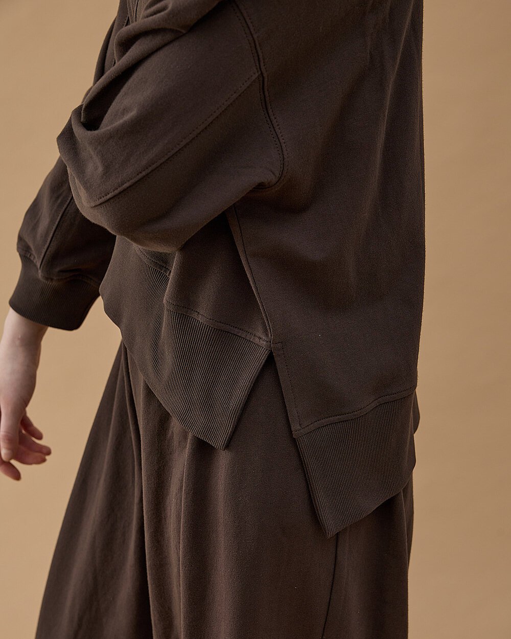 Cotton İki İplik Nervürlü Kesikli Dikişli Kısa Sweat Kahve