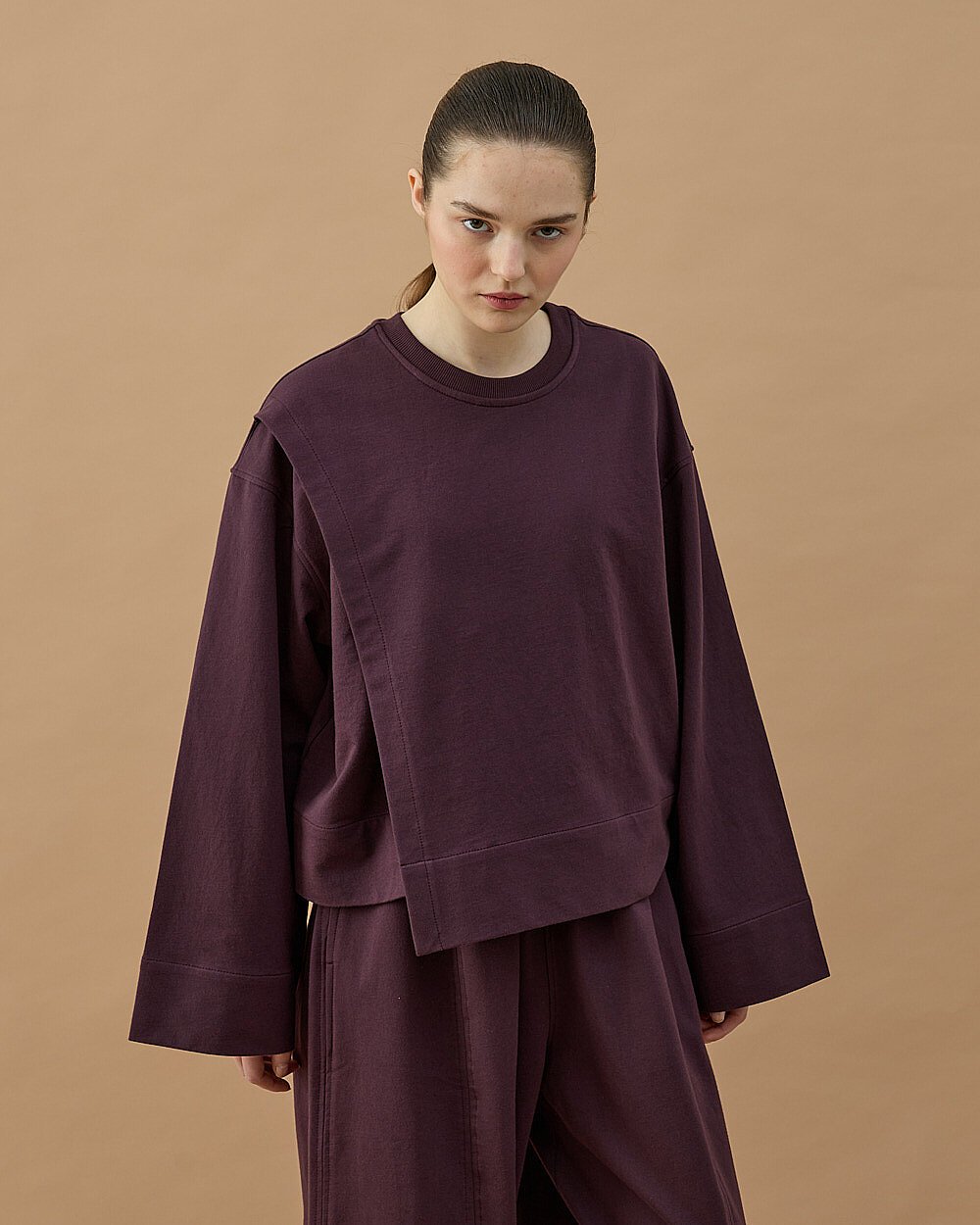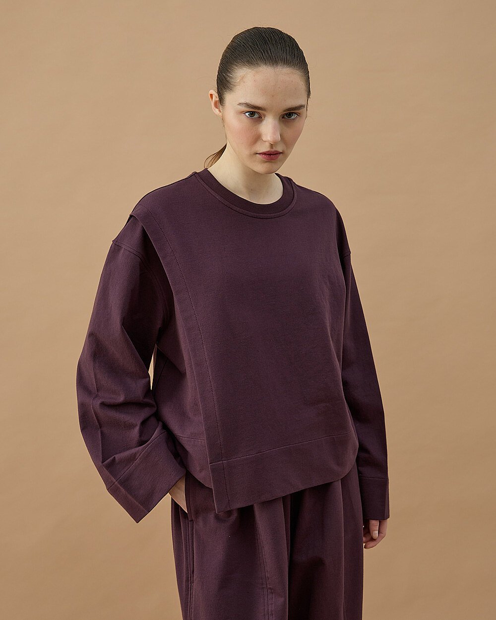 Cotton İki İplik Önü Yırtmaçlı Bluz Mürdüm