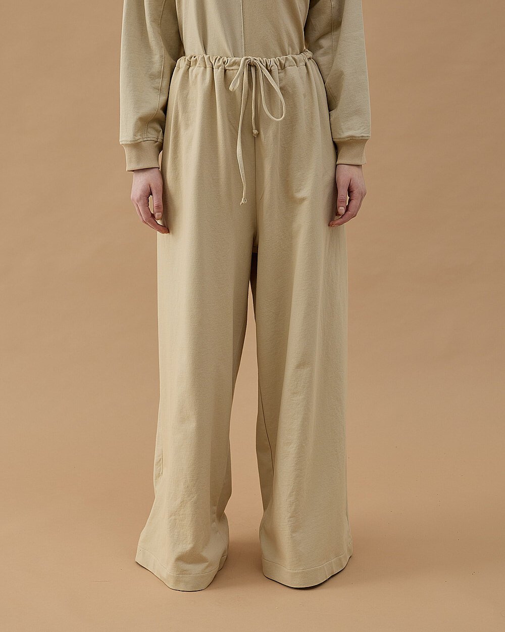 Cotton İki İplik Wide Leg Bol Eşofman Altı Bej