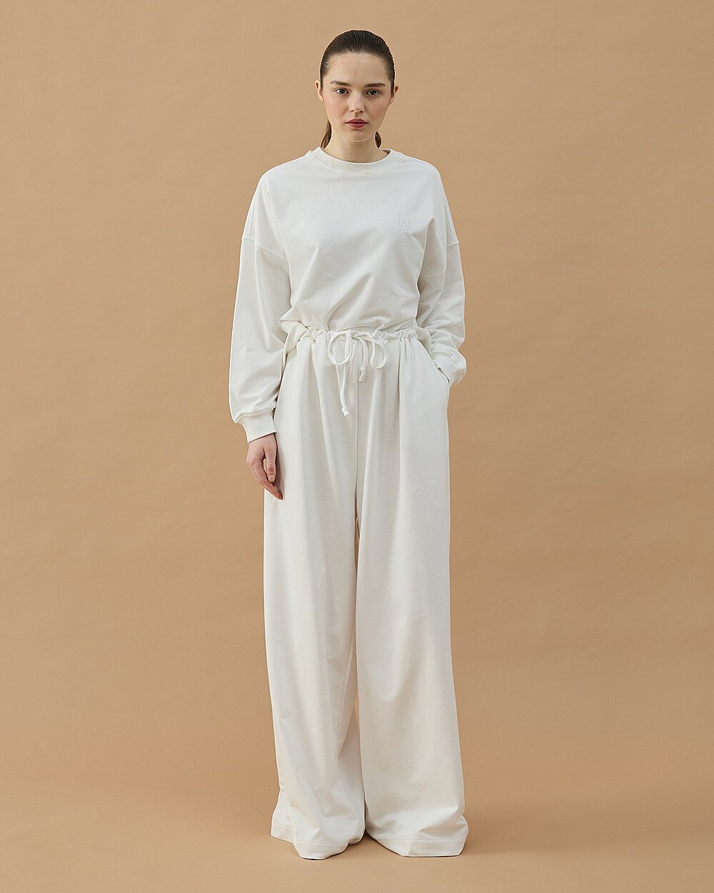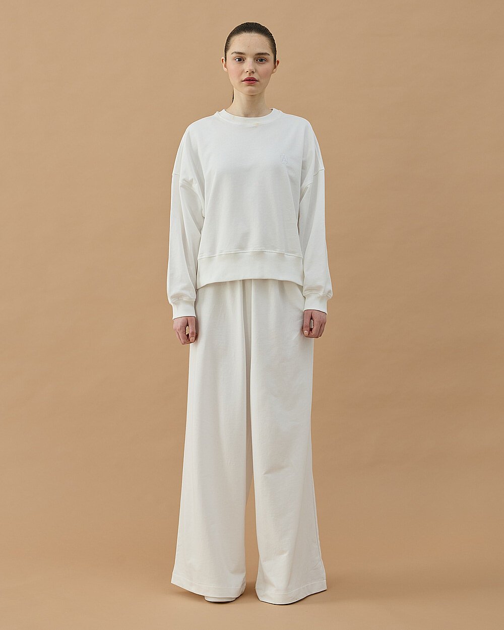 Cotton İki İplik Wide Leg Bol Eşofman Altı Ekru