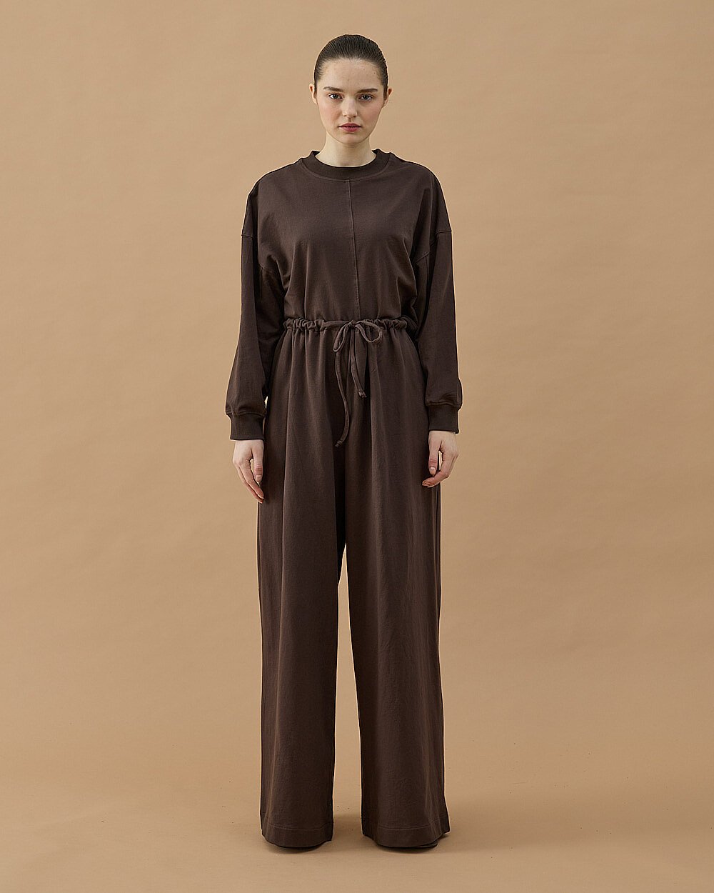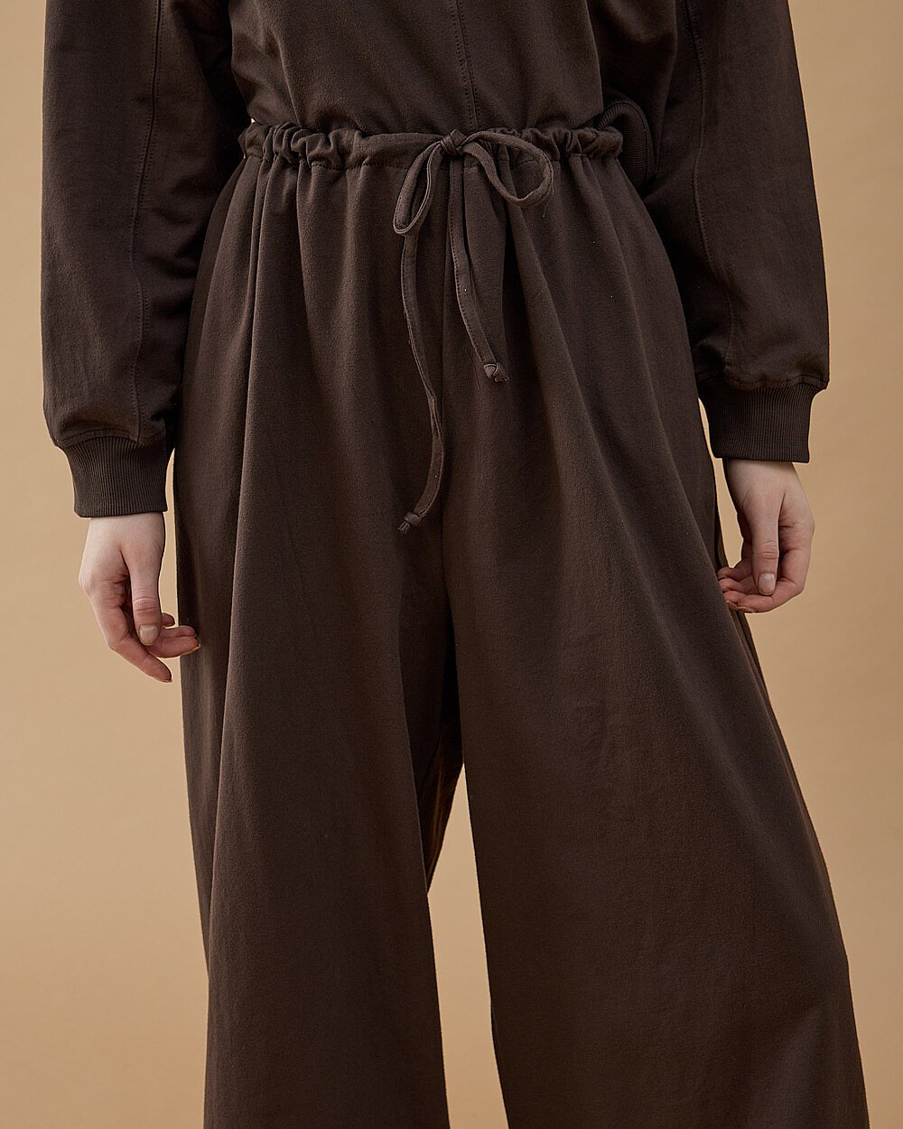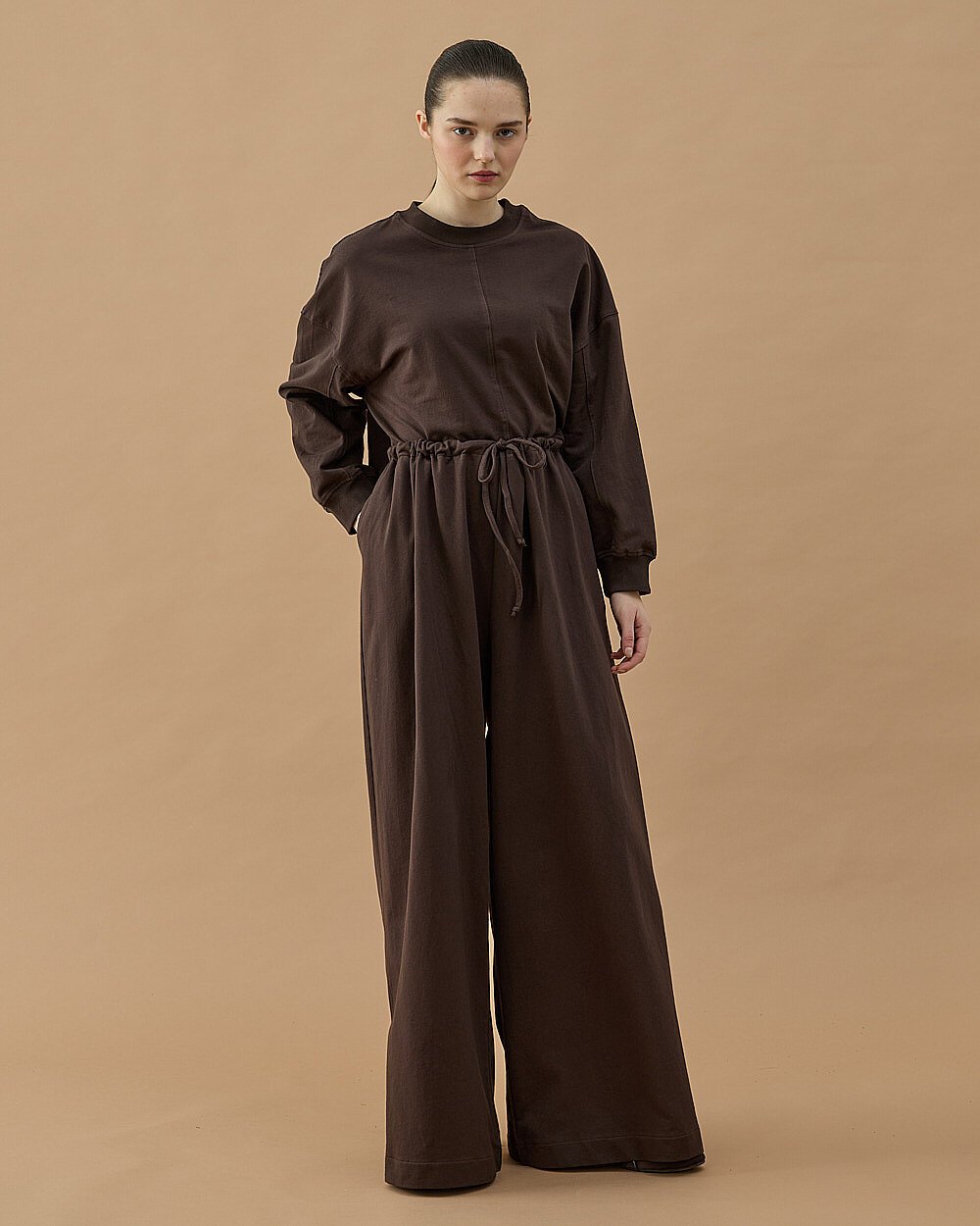 Cotton İki İplik Wide Leg Bol Eşofman Altı Kahve