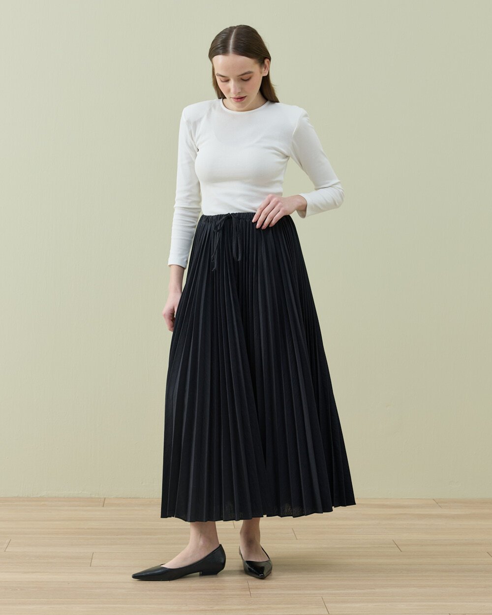 Hareketli ve zarif görünümüyle öne çıkan bu etek, çok piliseli yapısı sayesinde akıcı ve feminen bir siluet oluşturur. Bel kısmındaki bağlama detayı kullanım kolaylığı sağlarken, asimetrik formu tasarıma modern bir dokunuş katar. Günlük kombinlerden özel gün stiline kadar farklı kombinlerle rahatlıkla kullanılabilen şık bir parçadır.