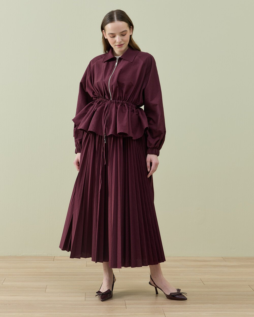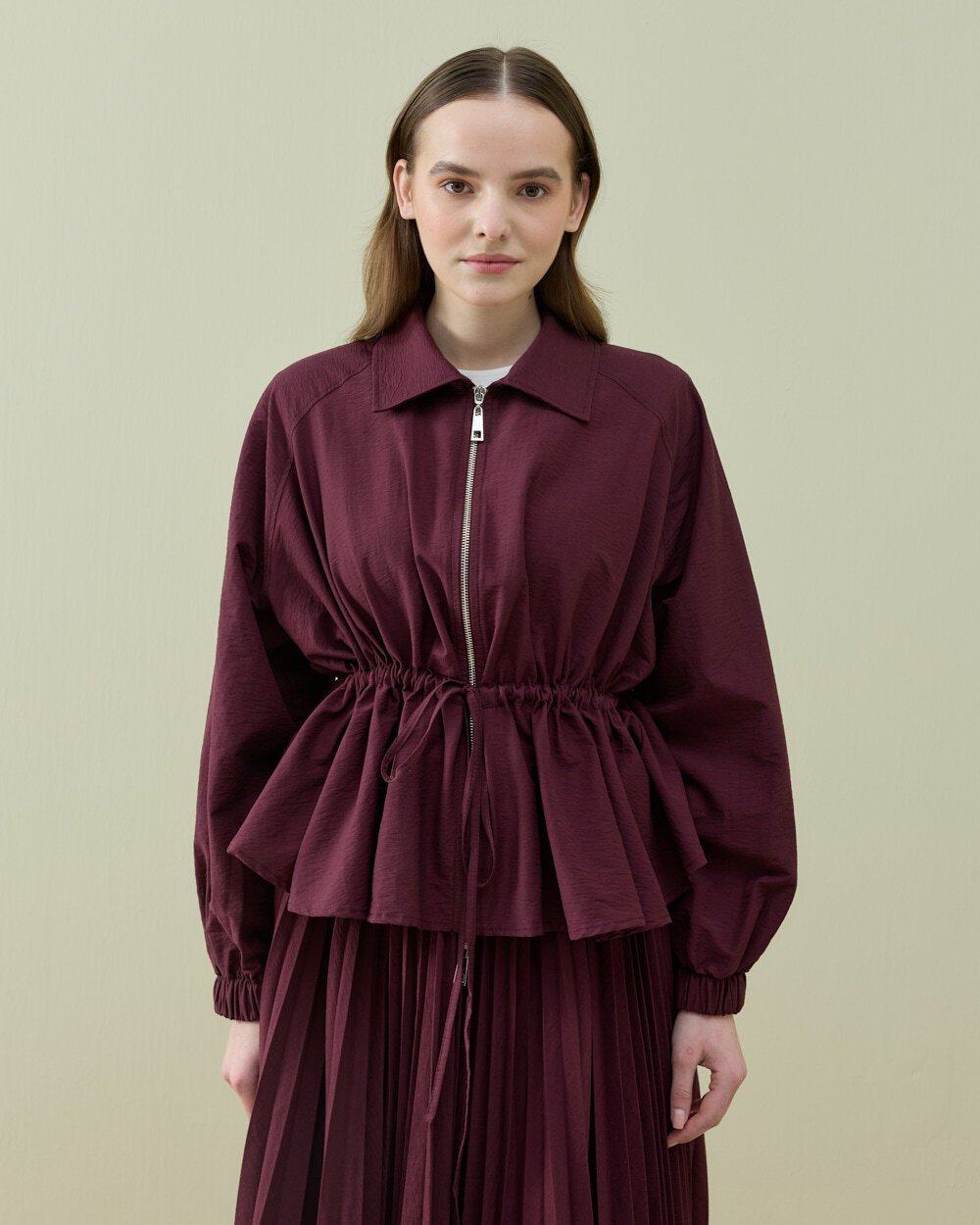 Modern ve feminen detaylarıyla öne çıkan bu ceket, bel kısmındaki büzgü detayı sayesinde vücuda form kazandıran şık bir siluet oluşturur. Fermuarlı ön tasarımı pratik kullanım sağlarken, alt kısmındaki volanlı form hareketli ve zarif bir görünüm sunar. Günlük kombinlerde olduğu kadar şık kombinlerde de rahatlıkla kullanılabilecek zamansız bir parçadır.