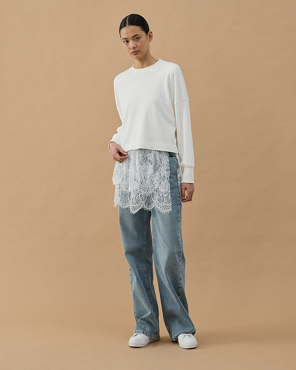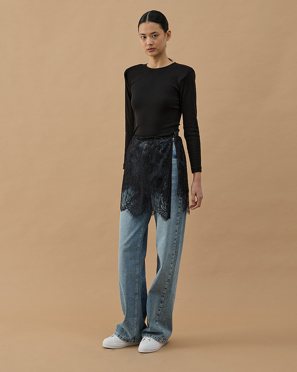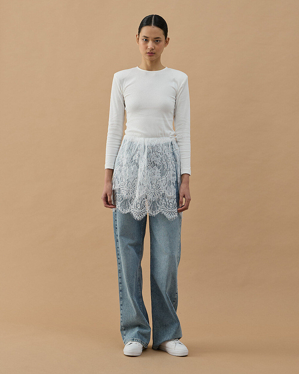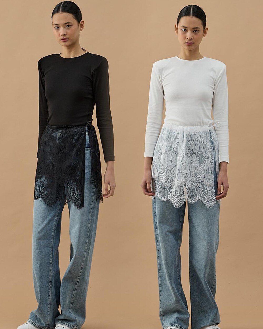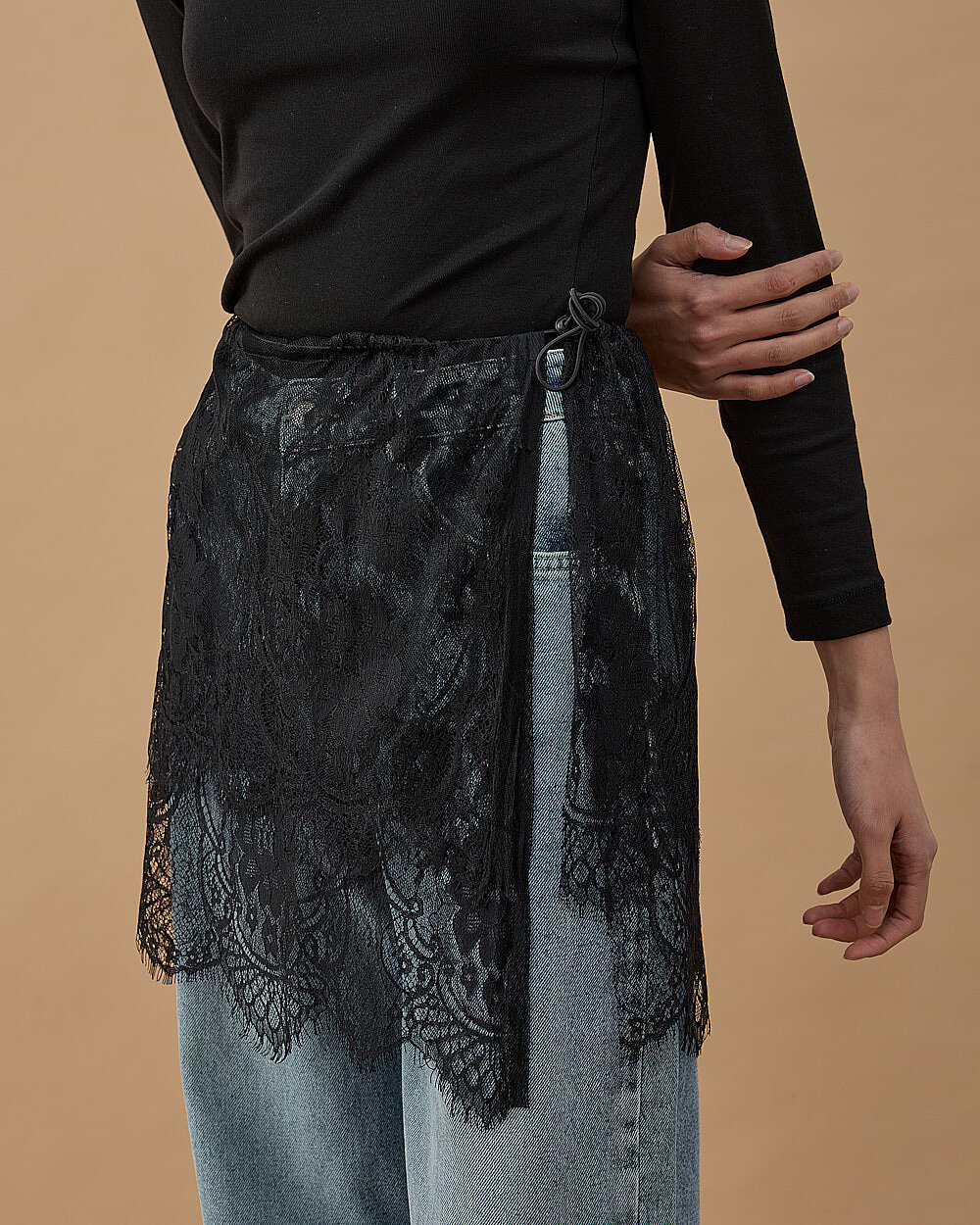 İnce ve akışkan dantel dokusu, çift kat yapısıyla dengeli bir hacim ve hareket kazandırırken; hafifliği sayesinde gün boyu konforlu bir kullanım sunar. Elbise, tunik ve uzun üstlerle birlikte kullanıldığında derinlikli ve modern bir silüet oluşturur.