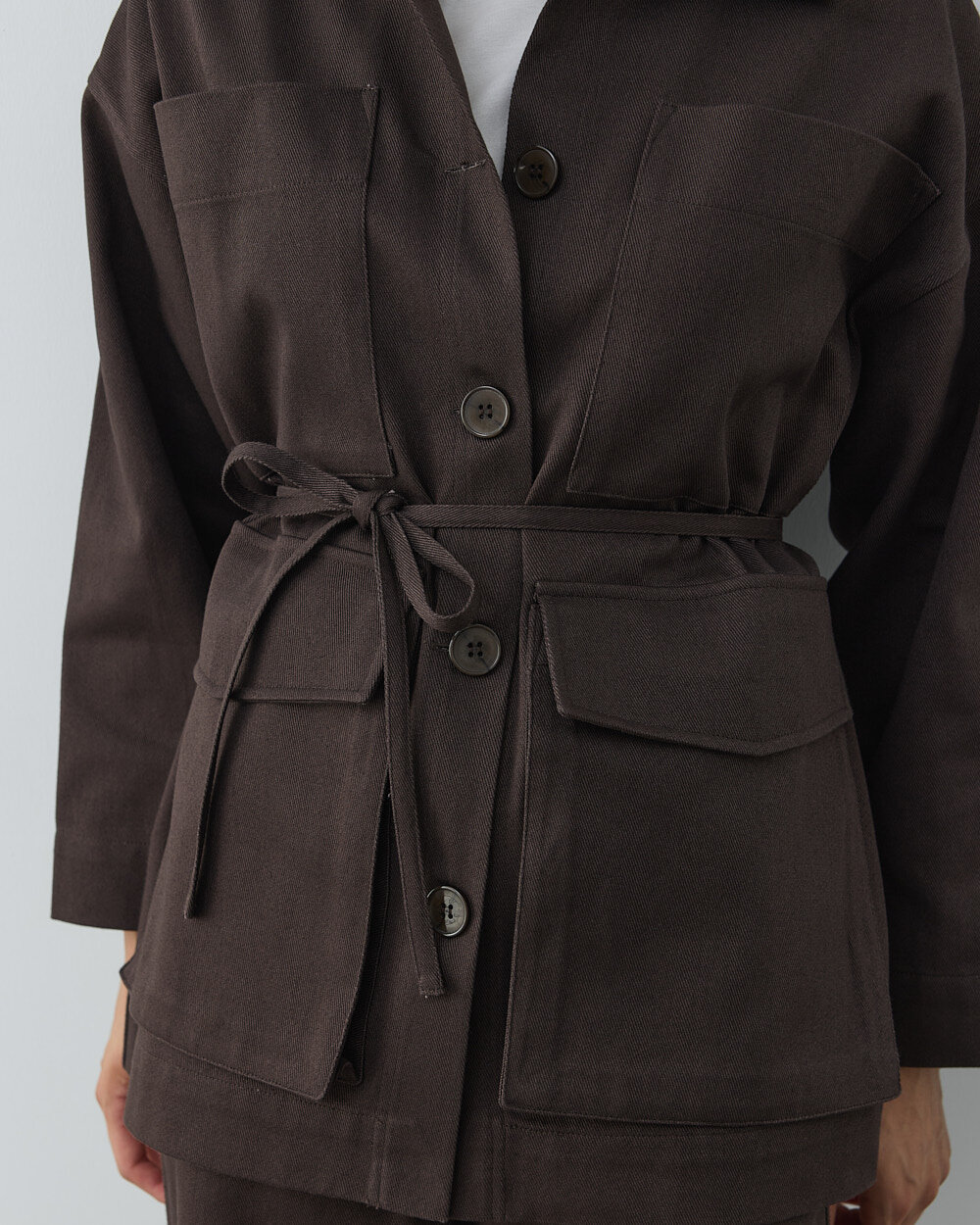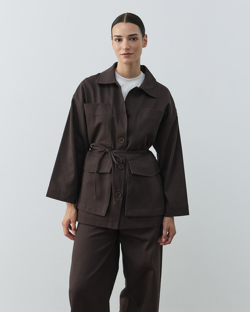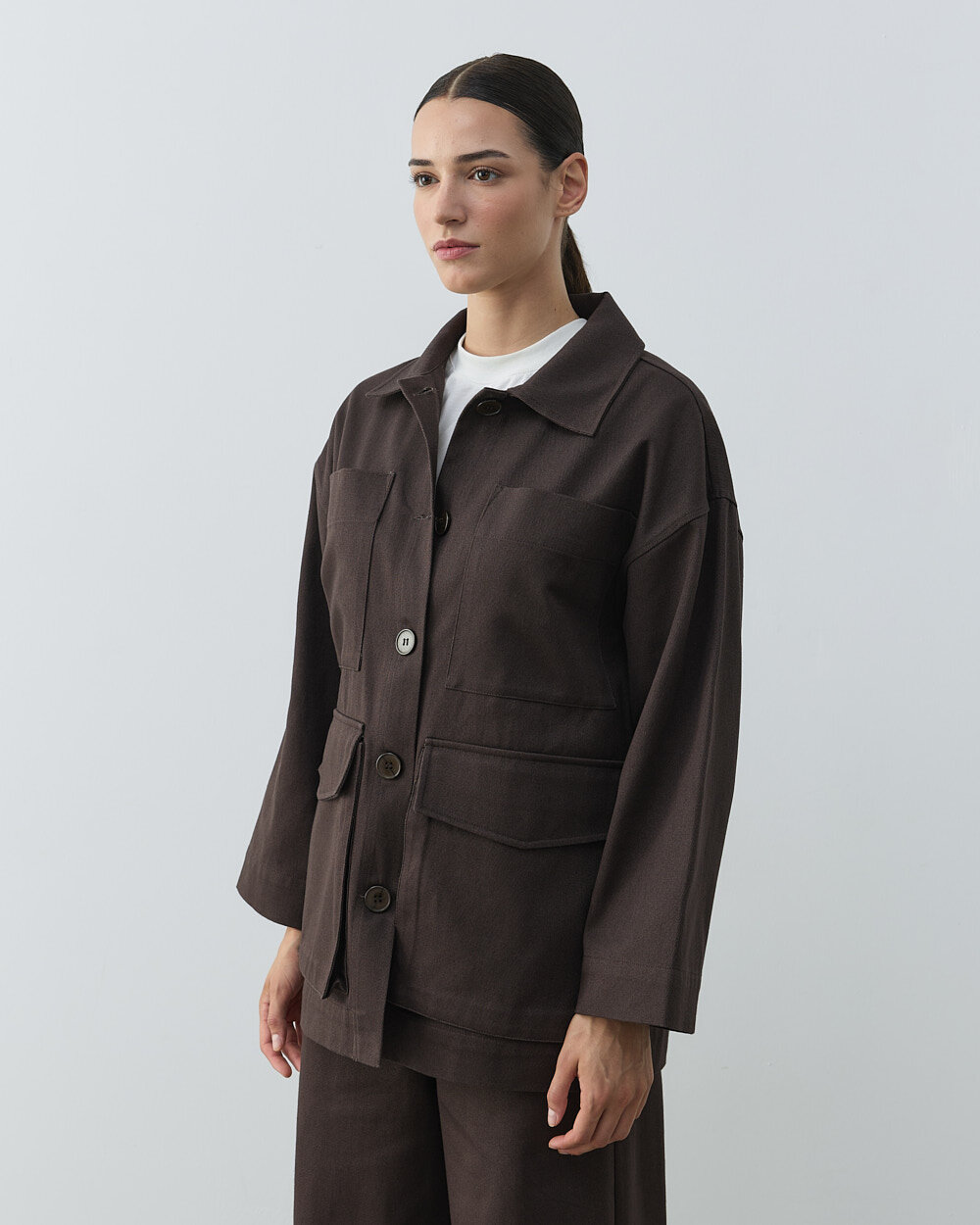 Detay: Fonksiyonel tasarımı ön planda tutan bu ceket, yapılandırılmış formu sayesinde hem tek parça kullanım hem de katmanlı kombinler için uygundur. Ön yüzeyde yer alan düğmeli kapama sistemi, kullanım kolaylığı sağlarken klasik bir görünüm sunar. Bel hattında bulunan bağcık detayı, vücuda göre ayarlanabilir bir siluet oluşturarak farklı kullanım stillerine imkan tanır. Ön bölümde konumlandırılmış kapaklı cepler, hem fonksiyonel depolama alanı sunar hem de tasarıma dengeli bir hacim kazandırır. Düz yaka formu ve uzun kol yapısı, zamansız bir ceket silueti oluşturur. Orta ağırlıktaki kumaş yapısı sayesinde mevsim geçişlerinde rahatlıkla kullanılabilecek çok yönlü bir dış giyim ürünüdür.