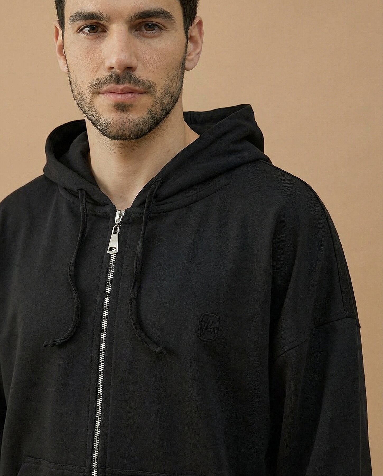 Detay: Cotton iki iplik kumaştan üretilen bu fermuarlı kapüşonlu sweatshirt, dayanıklı yapısı ve konfor odaklı tasarımıyla öne çıkar. Ön yüzeyde yer alan tam boy fermuar kolay kullanım sağlarken, kapüşonlu form ekstra koruma sunar. Rahat kalıp ve düşük omuz kesimi hareket özgürlüğünü artırır. Yan cepler fonksiyonel kullanım sağlarken, ribana detaylı kol ve etek uçları formun korunmasına yardımcı olur. Günlük kullanım için uygun olan model, aynı kumaş grubundaki alt parçalarla takım olarak da tercih edilebilir. Unisexdir.
