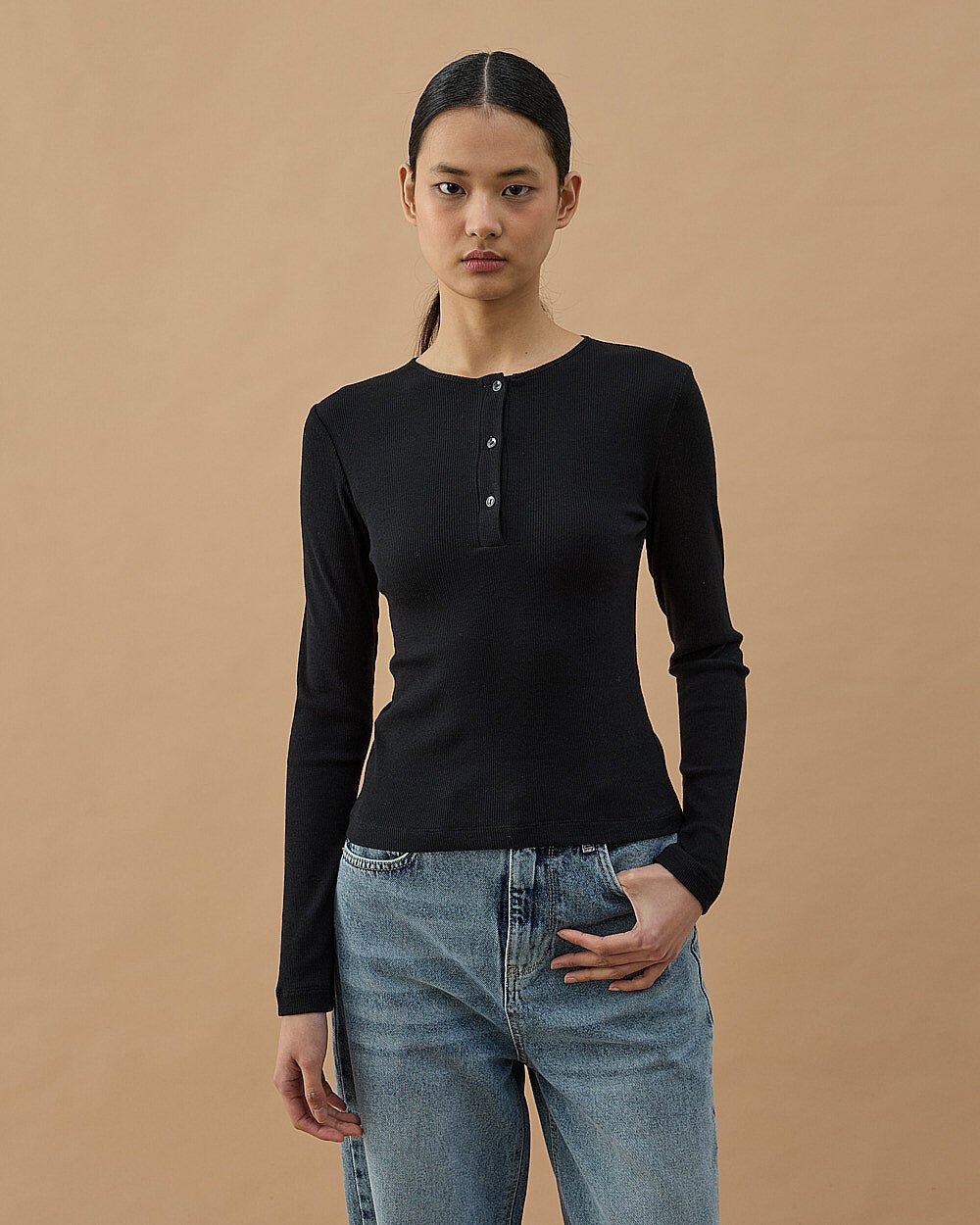 Fitilli Penye Kaşkorse Patlı Düğmeli Uzun Kollu Slim Fit Body Siyah