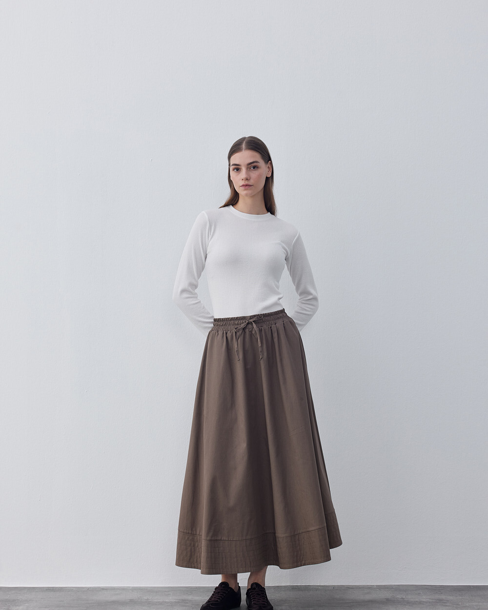 Şifon Tek Büzgülü Etek Acı Kahve - Aybikestil %52 İndirim +1 Renk