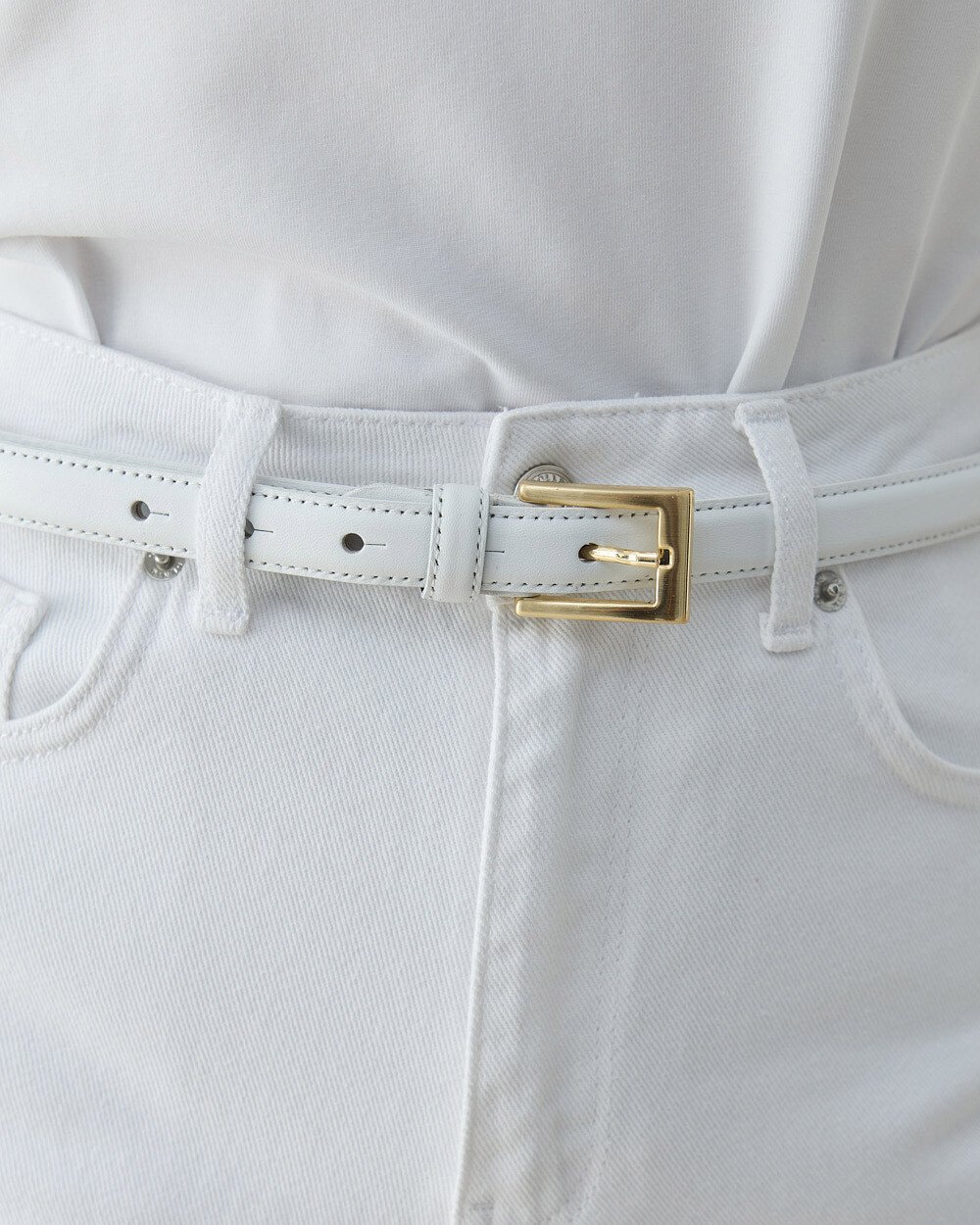 Gerçek Deri İnce Kemer Beyaz