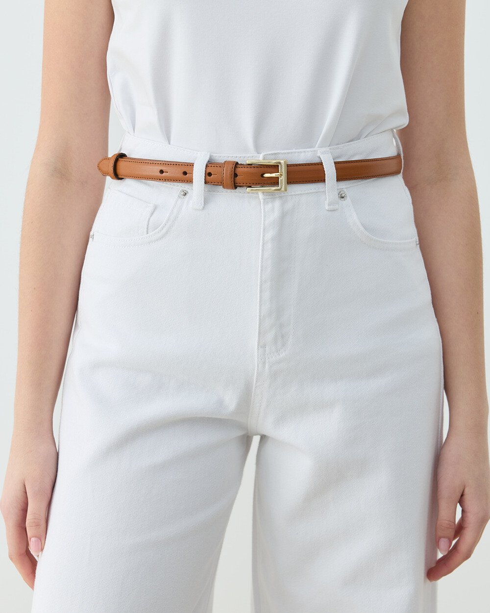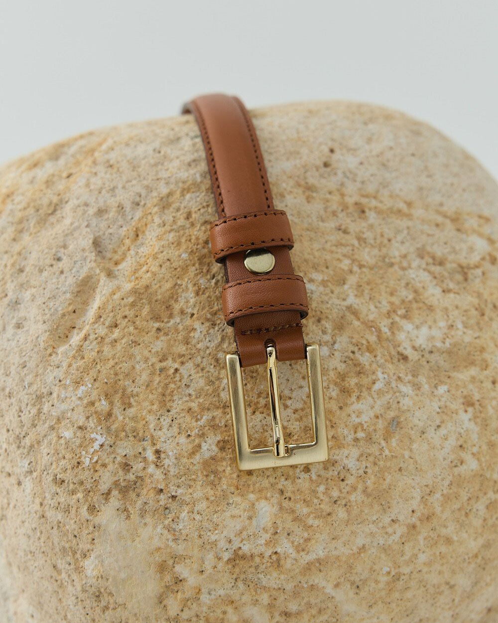 Gerçek Deri İnce Kemer Camel