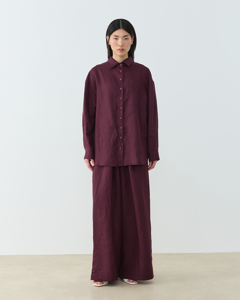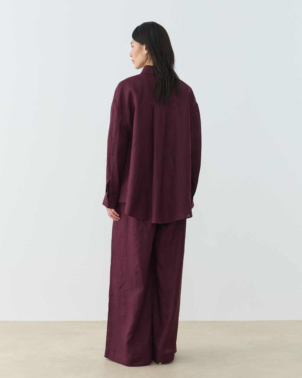 Keten Beli İpli Bol Wide Leg Pantolon Bordo