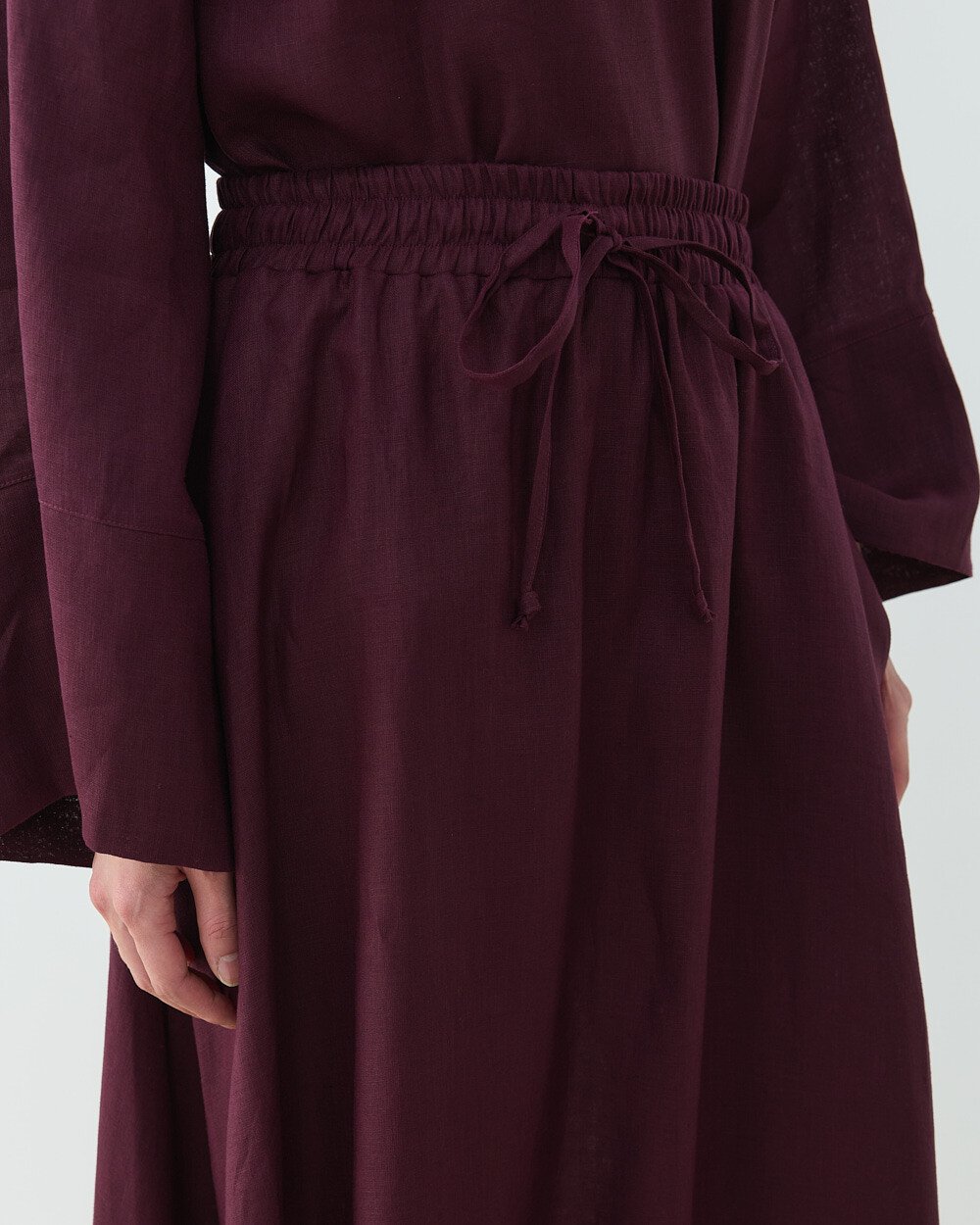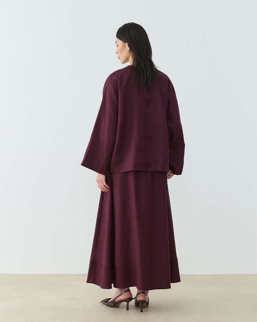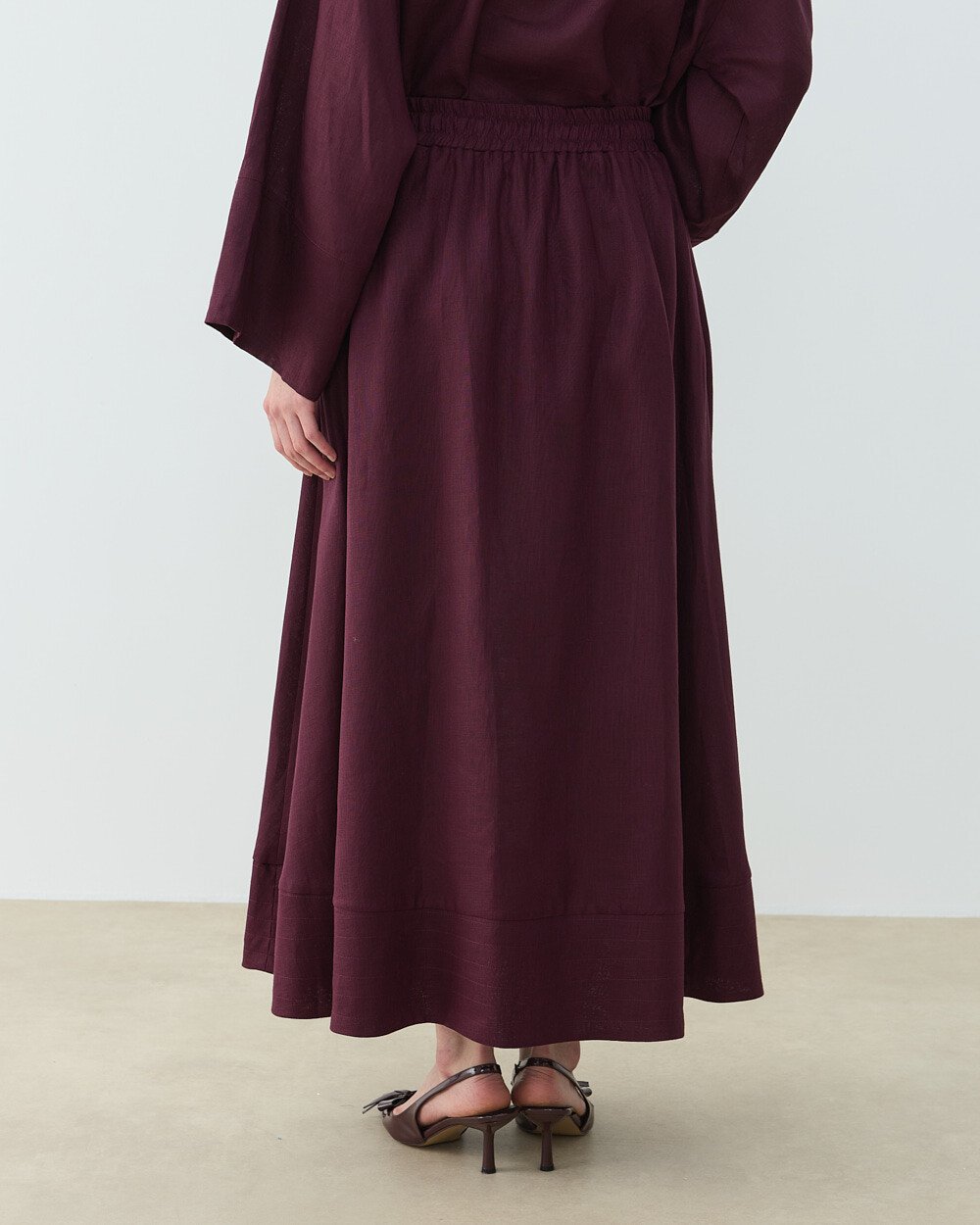 Keten Nervür Detaylı Cepli Font Etek Bordo