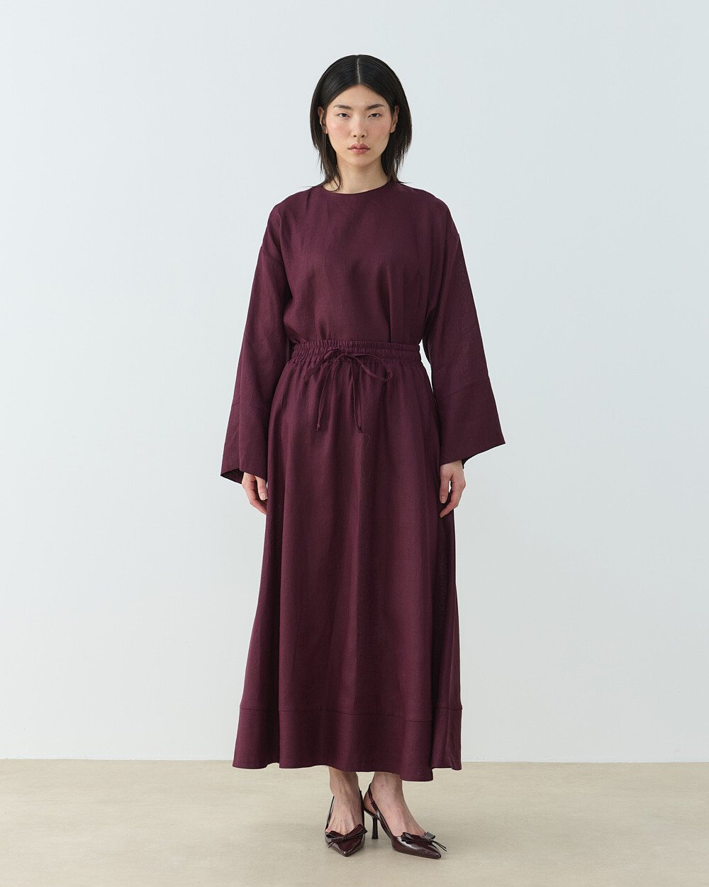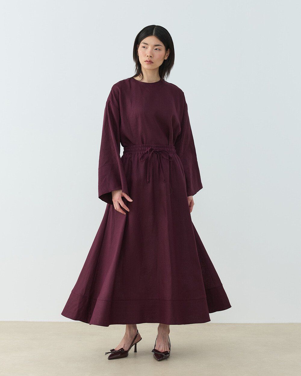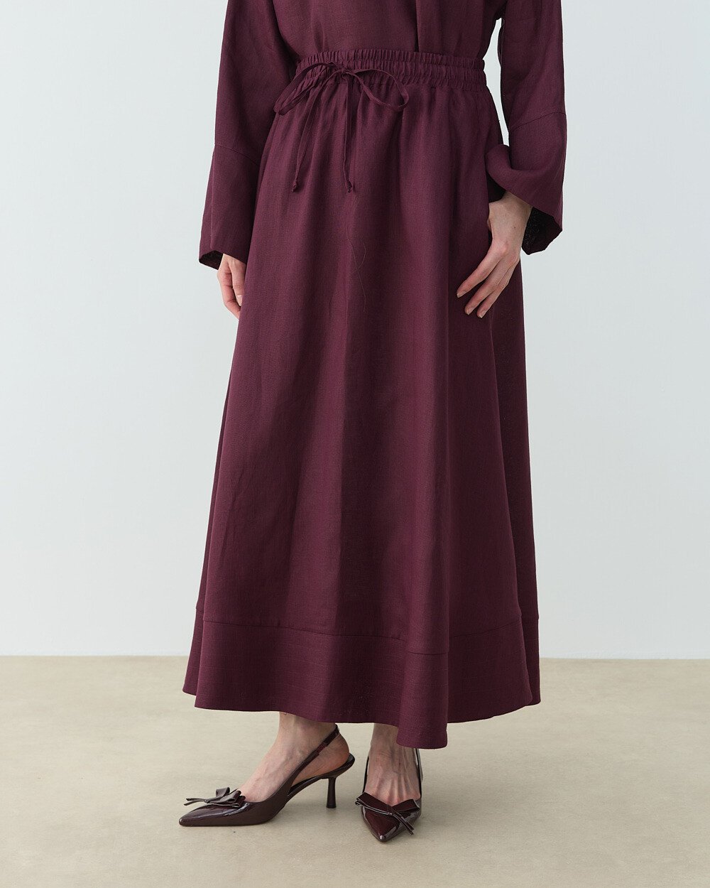 Keten Nervür Detaylı Cepli Font Etek Bordo