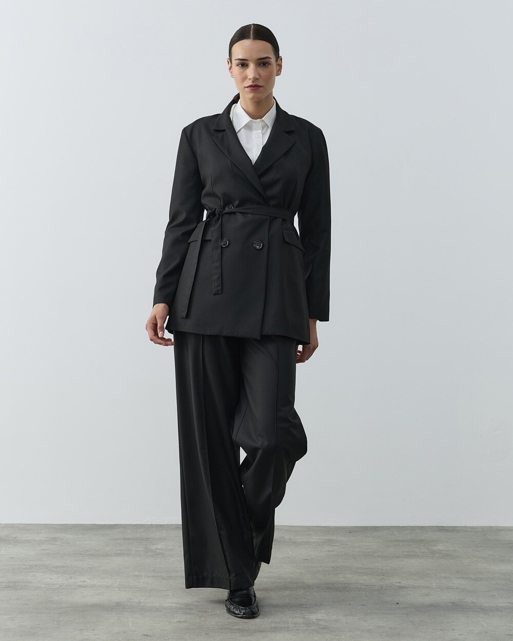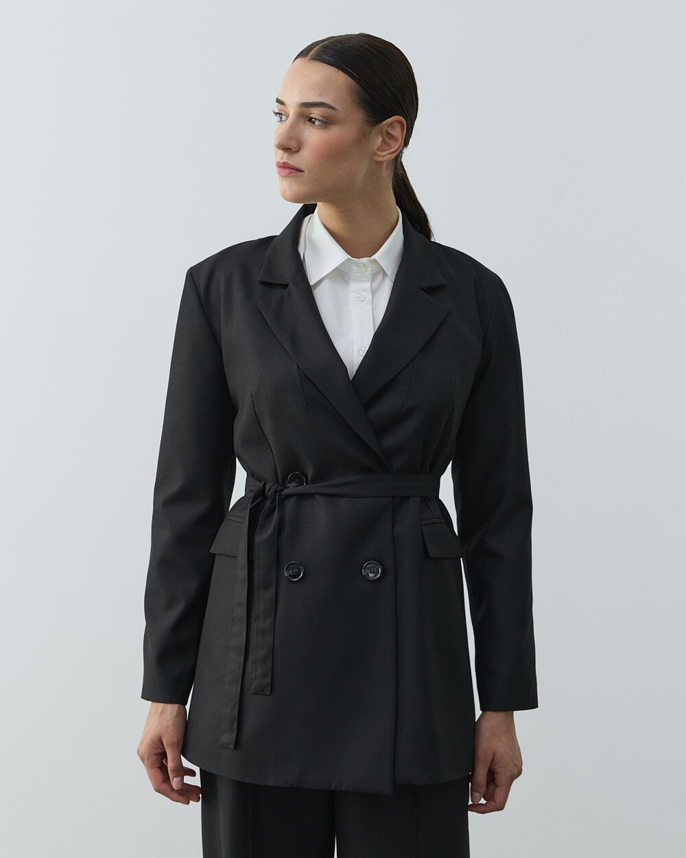Geniş kesimi ve salaş yapısıyla ön plana çıkan kruvaze klasik blazer ceket, şıklığı ve rahatlığı bir arada sunuyor. %65 Polyester %33 Viskon %2 Elastan karışımı kumaşı sayesinde hem yumuşak hem de dayanıklı bir yapıya sahip. Yan cep detayları ve melanj düğmeleriyle modern bir dokunuş kazanan bu ceket, standart beden uyumu (34-44 arası) ile farklı vücut tiplerine rahatlıkla uyum sağlar. 80 cm boyu ve geniş omuz kesimi ile hem günlük hem de şık kombinlerde tercih edilebilecek bu parça, her kadının gardırobuna rahatça uyum sağlayacak nadide bir tasarım. Ceket kruvaze form detayları ve geniş kalıbı, tarzınıza sofistike bir hava katarken rahatlık da sunuyor.