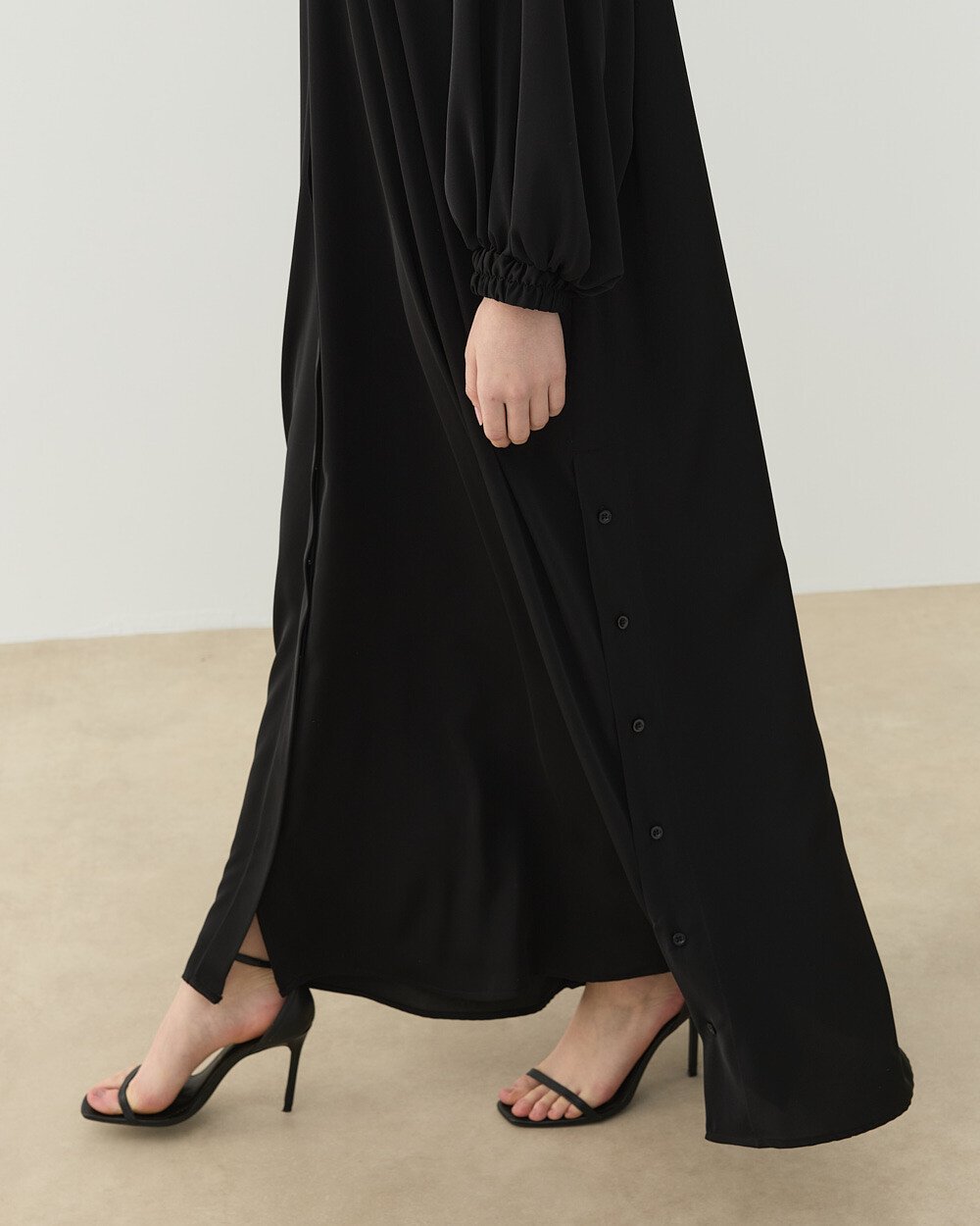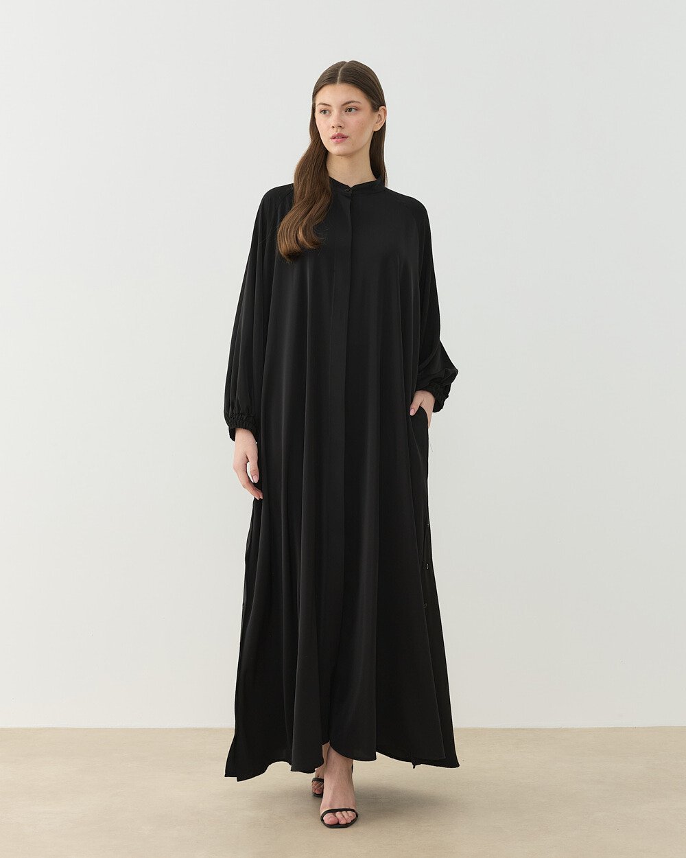 Krep Yandan Yırtmaçlı Düğmeli Abaya – Şıklık ve Konforun Buluştuğu Tasarım! Hakim yaka ve önden komple düğmeli tasarımıyla bu lacivert abaya, zarif ve şık bir görünüm sunar. İki yandan düğmeli ve belden kuşaklı yapısı, modern bir stil katarken rahat bir kullanım sağlar. Manşetleri lastikli ve büzgülü olan bu astarsız abaya, %100 krep kumaşı sayesinde hafif ve dökümlü bir yapıya sahiptir. 143 cm boyu ve salaş kesimi ile dört mevsim rahatlıkla kullanılabilecek bu model, her kombinle zarif bir duruş sergiler. Standart beden yapısı 34-44 beden aralığına uyumludur. Şıklığı ve rahatlığı bir arada sunan bu abaya ile stilinizi bir üst seviyeye taşıyın! Sevdikleriniz ve Kendiniz İçin Harika Bir Hediye Seçeneği
