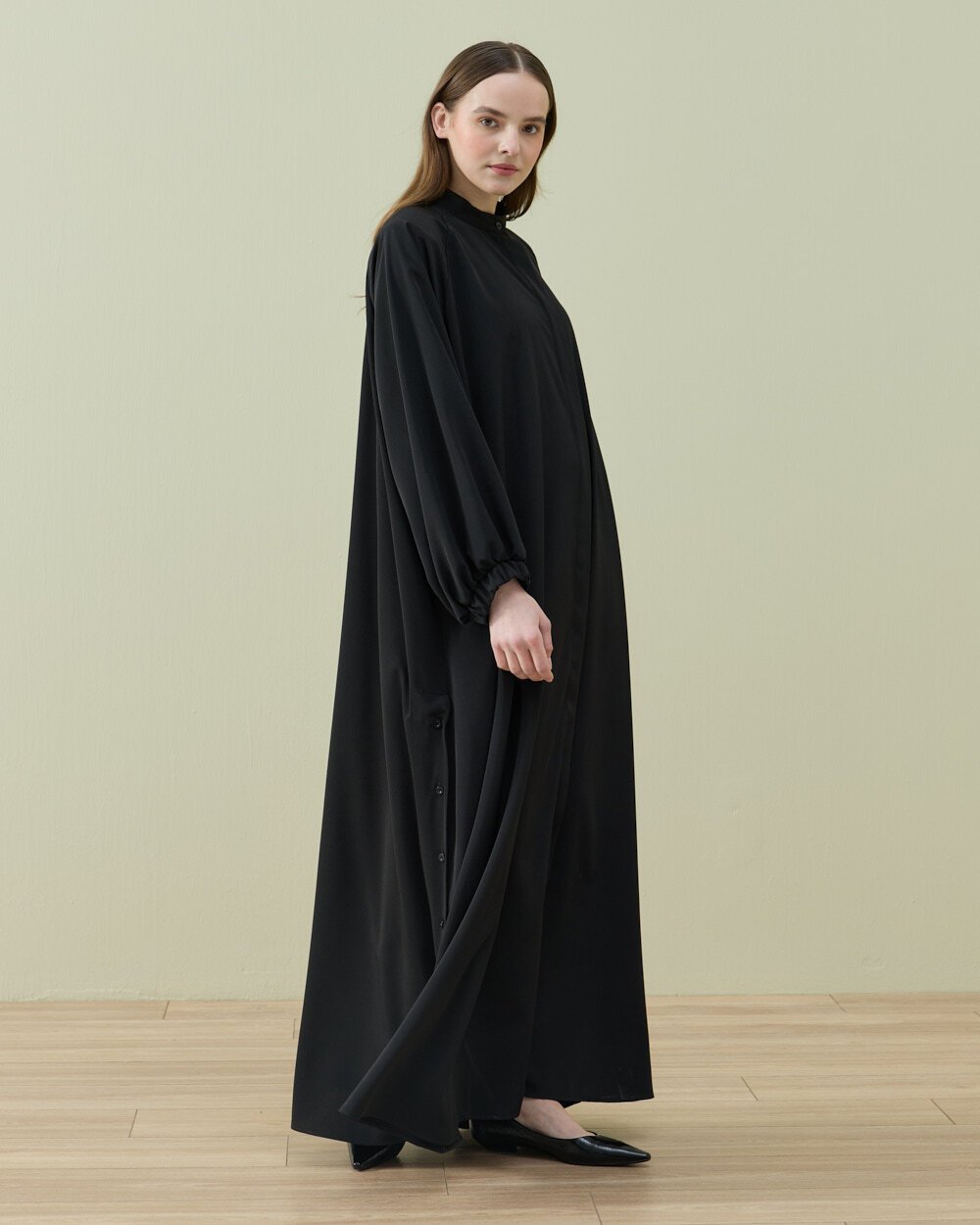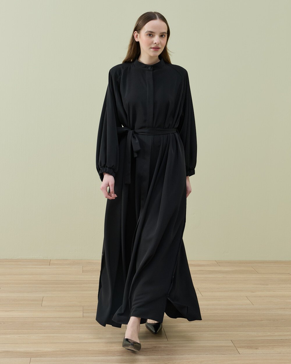 Krep Yandan Yırtmaçlı Düğmeli Abaya – Şıklık ve Konforun Buluştuğu Tasarım!